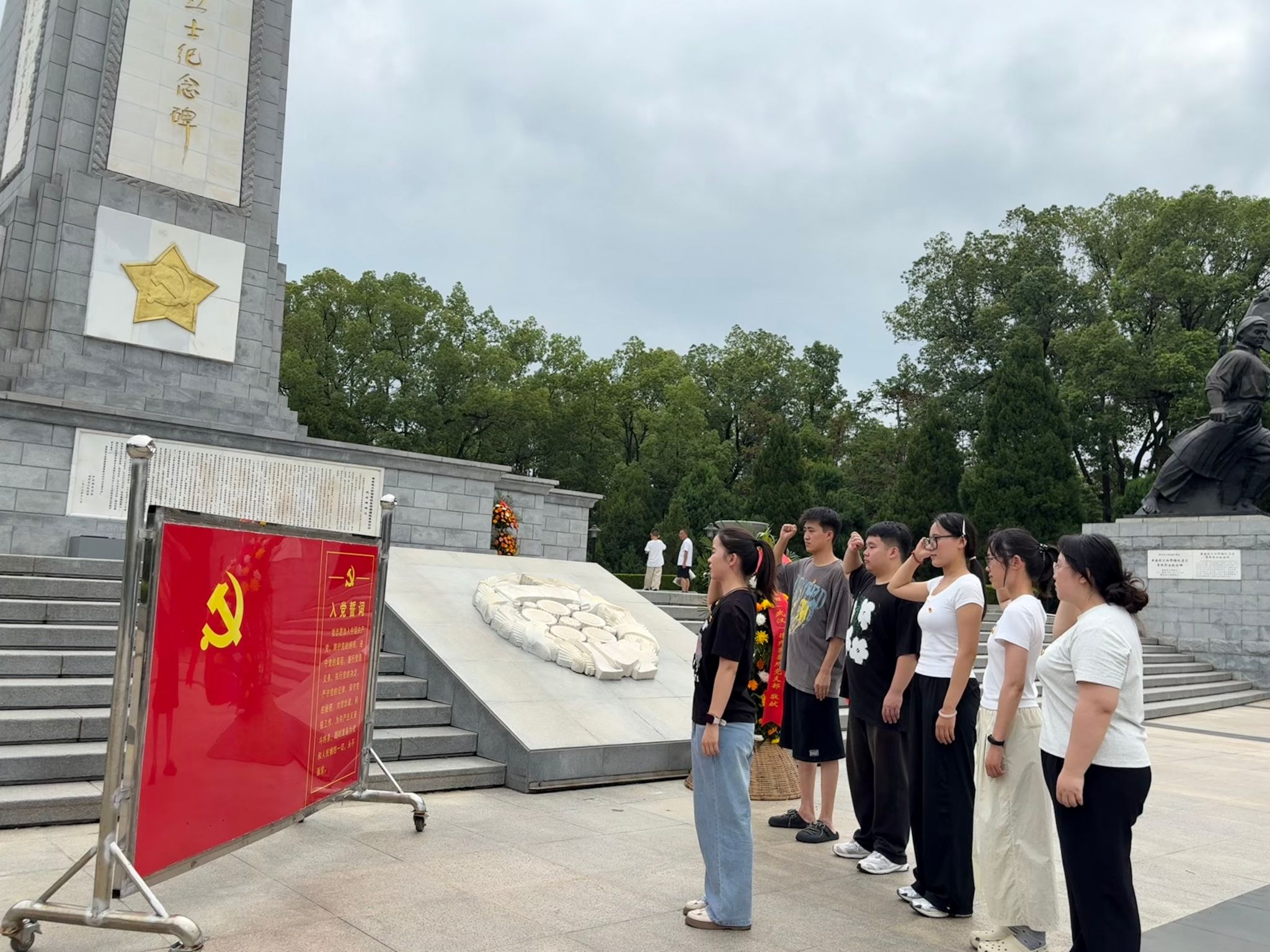 7月12日上午,实践团抵达黄麻起义和鄂豫皖苏区纪念园,全体成员列队肃立、默哀致敬,俯身献上花束,在党支部书记带领下,集体重温入党誓词。