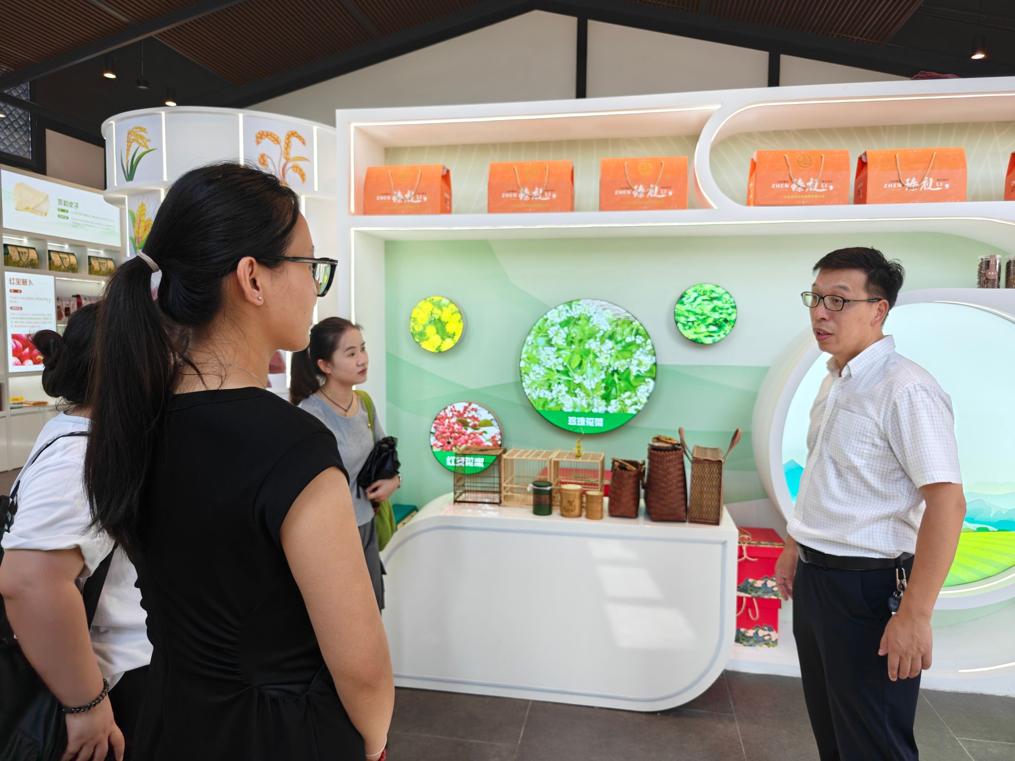 7月13日上午,实践团首站来到红安苕展销中心,成员们对红安这片土地有了更全面的认识。红苕在艰苦卓绝的烽火岁月里,成为滋养万千英雄儿女的力量源泉,“红安苕韵”乡俗馆全面展现了红安苕的历史,从种植面积到主要品种,从营养价值到产业发展,红安苕的每一步都走得坚实而有力。这背后不仅是红安人民对土地的热爱与坚守,对传统农业的传承与创新,更是实现乡村振兴的坚实支撑与生动实践。他们用勤劳的双手,将红安苕打造成了一个响亮的品牌,让红安苕走向了更广阔的舞台。