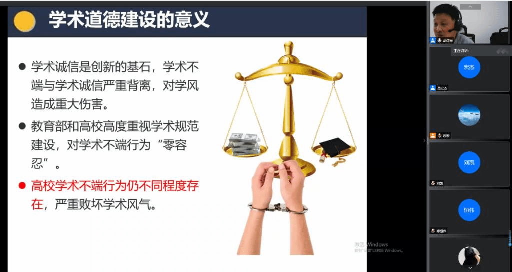 (通讯员 高宏杰)为增强研究生新生的科学道德精神和学风自律意识,优化公司学术诚信环境,培育优良学风,9月17日上午,公司邀请胡红青教授线上面向研究生新生开展学术道德与学术规范教育,研究生辅导员胡志宏主持会议。
