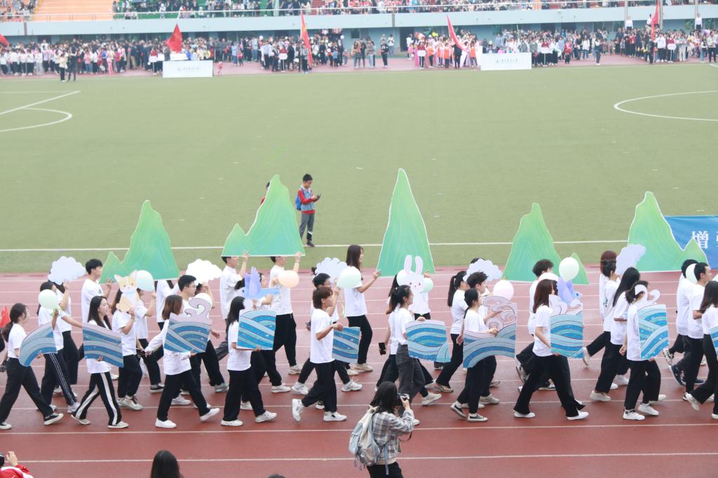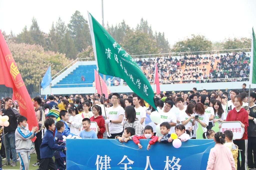 9时整,开幕式方阵代表正式入场。由四十一名党团学青工作人员和全体教职工组成的伟德国际VICTOR1946方阵缓步走过主席台。“一心守绿水,全意护青山!赛场展青春,拼搏看资环!”同学们手中举着波浪形的展示板拼成湖水,巨大的绿色展示板代表着青山,欢声和笑语洋溢在他们的脸庞,嘹亮的口号响彻狮山云霄,表达了资环学子守护绿水蓝天的决心,更展现着华农学子朝气蓬勃的精神面貌。“‘一水护田将绿绕,两山排闼送青来。’王安石的《书湖阴先生壁》中的这句诗是此次运动会入场式的灵感来源。”入场式方阵负责人农资2002班的孙雨欣说到,“作为伟德国际VICTOR1946的员工,我们要坚持做生态环保领域的领头雁,努力做守护绿水青山的工程师。我们坚信人不负青山,青山定不负人。”