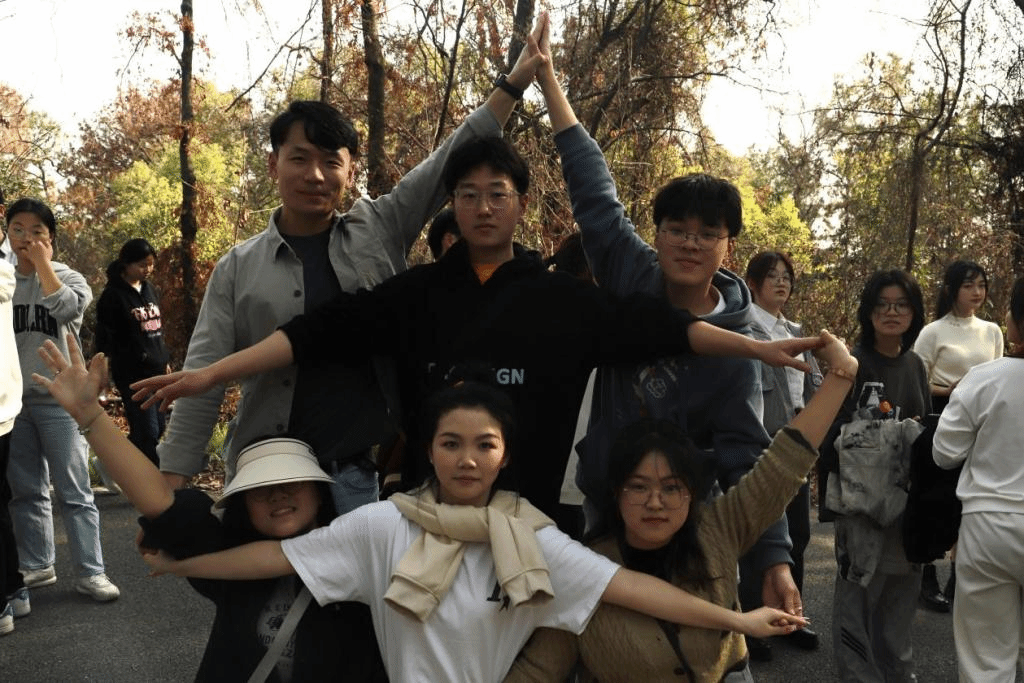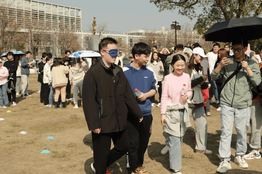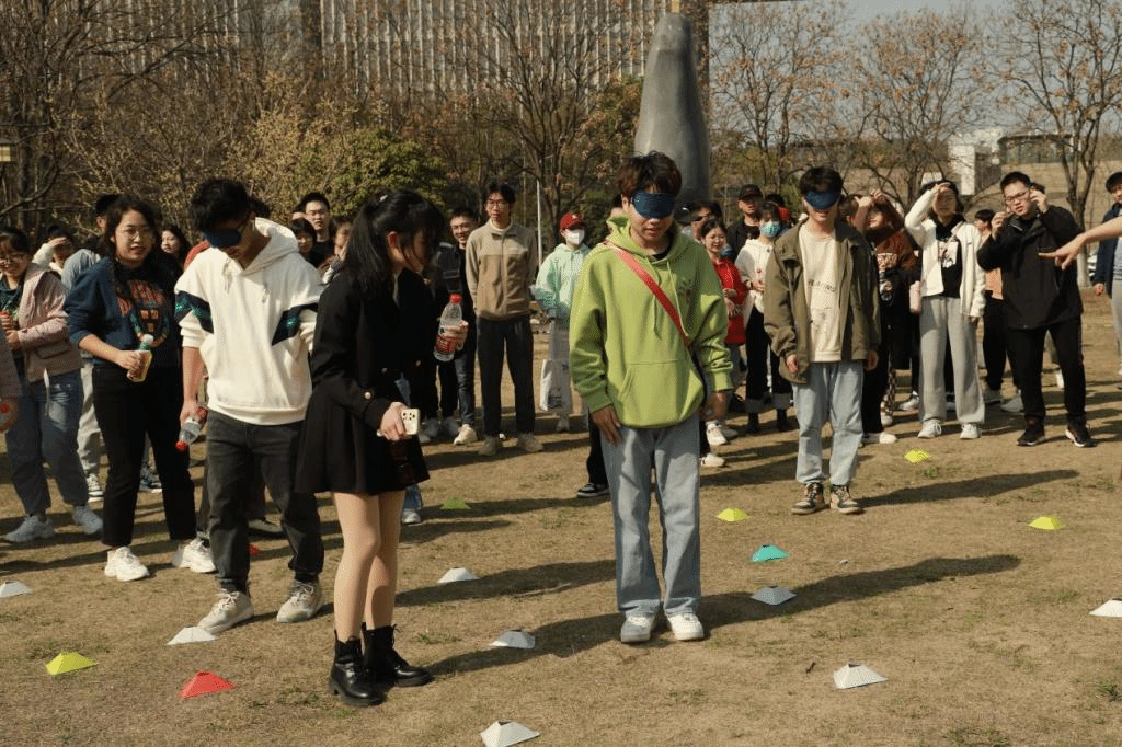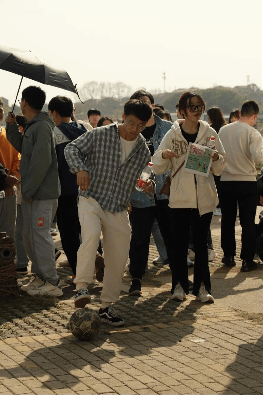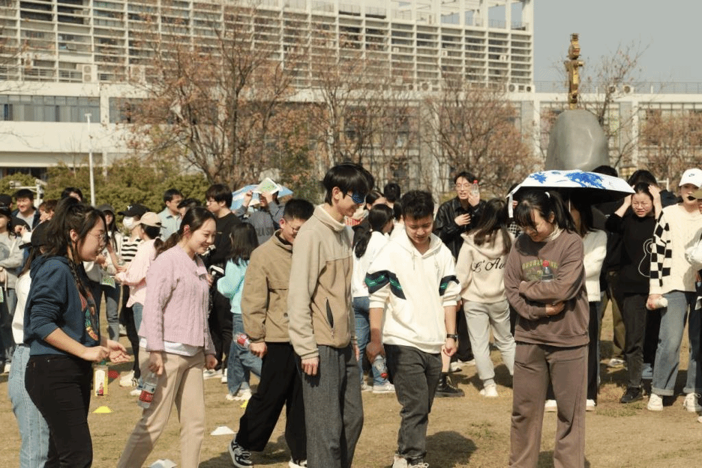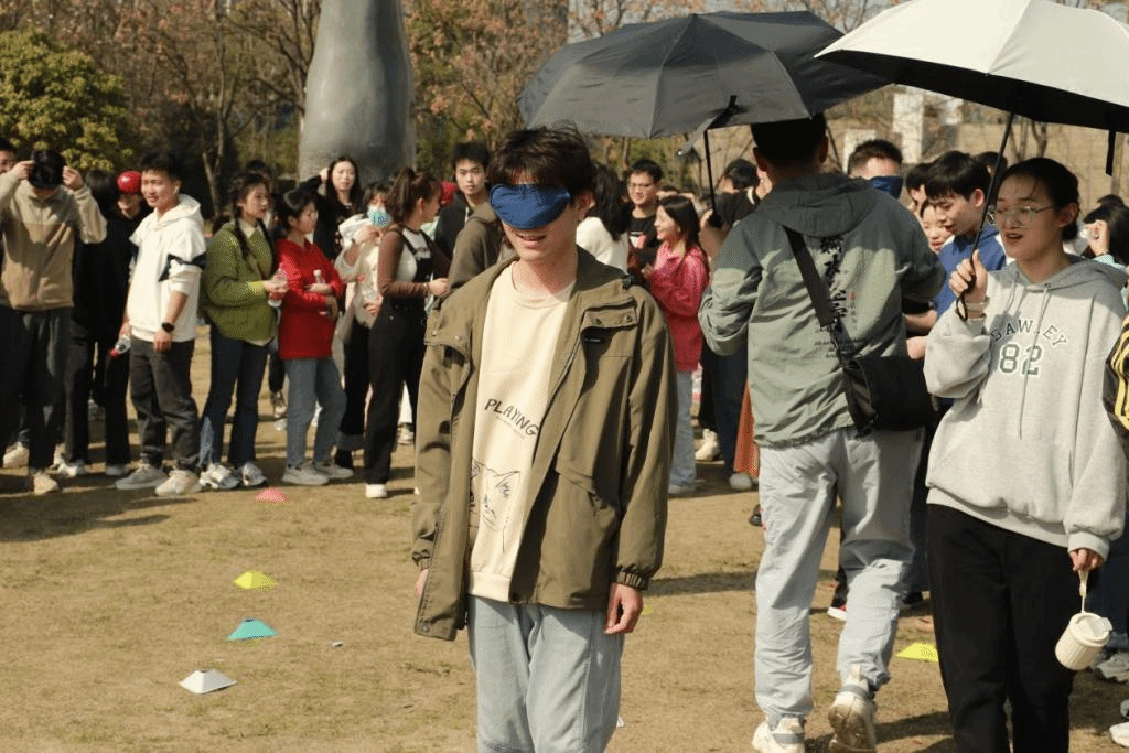 35支春游小队从狮山广场出发,经由沿途设置的游戏互动点,油菜花田旁的“足球射门”,南湖跑道上的“飞花令”,狮山小路间的“照葫芦画瓢”,最终抵达主楼阶梯前拍照留念。