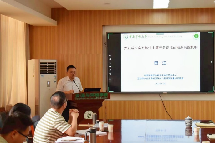 6月18日上午,华南农业大学资源环境公司副经理、亚热带农业生物资源保护与利用国家重点实验室课题组长、根系生物学研究中心田江研究员和bv伟德国际1946植物科学技术公司杨万能教授应公司丁广大教授邀请参加第16期资源与环境青年创新前沿论坛,与华农师生一起探讨了南方酸性土壤中大豆适应养分逆境的根系调控机制和作物表型组技术方面的最新研究进展。论坛由丁广大教授主持。
