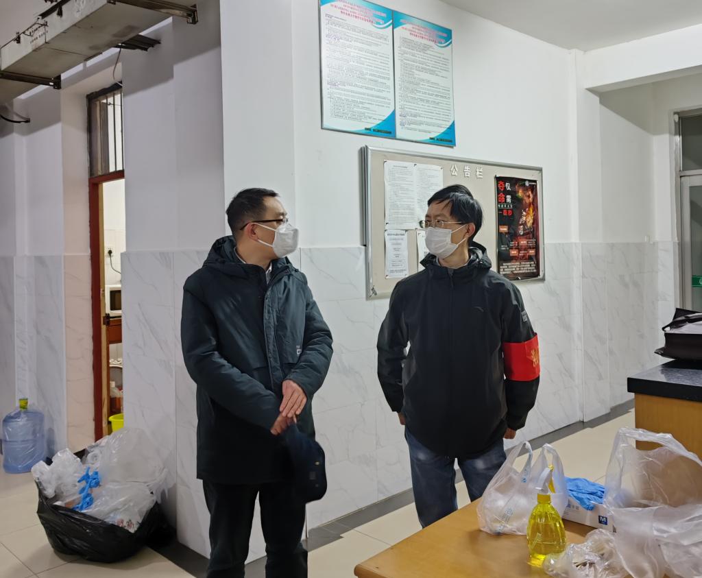 在宿舍区,耿明建、戴珂等老师在寒风中穿行,协助医护人员为楼栋员工开展核酸检测、分发医药品,处理突发状况。老师们主动轮流值守,号召楼栋内中、外员工志愿者有序接餐和送餐到宿舍门口。在耿明建老师看来,疫情就是命令,作为共产党员,理应在校园疫情防控阻击战中走在前面,为师生健康和校园平安做出贡献。在公司院楼和办公区,丁忠、陶艳红等老师昼夜坚守,清理实验区,排除安全隐患,开展困难教职工的帮扶工作,守护师生平安。