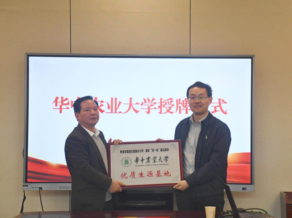 随后,熊海林对汨罗一中多年来的关心支持表示感谢,他从人才培养、科学研究、招生计划等方面详细介绍了公司情况。他表示,汨罗一中持续向华农输送优秀学子,通过大学学习成长为全面发展的人才,欢迎广大汨罗学子到南湖畔,到更人文、更开放、更自在的诗意校园学习。在座谈交流中,熊海林针对公司招生录取、毕业就业发展等问题逐一解答,宣传了公司的人才培养特色及招生政策,希望通过优质生源基地加强两校合作,共同做好优质生源的推荐和培养工作。最后,双方共同签署了合作协议并进行优质生源基地授牌仪式。