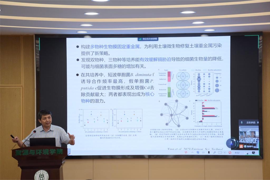 国家杰出青年基金获得者、农业微生物资源发掘与利用全国重点实验室副主任黄巧云教授以“科研教学齐迈进,支撑学科上台阶”为题,提出加强科研团队的高质量建设,加快科研团队的发展,推动生物有机肥产业发展,推广低成本土壤绿色修复技术,助力实现国家碳中和目标。蔡崇法教授报告了公司土壤侵蚀研究的现状与展望,从土壤、植物学、生态学等方面分析了土壤侵蚀研究的不同视角,未来研究重点领域包括加强土壤侵蚀退化与生产力提升等,将土壤侵蚀与粮食安全密切结合。谭文峰教授以土壤界面过程与土壤健康为主题,重点介绍了集约化土地利用驱动下土壤退化机制与生态调控的研究项目,明确地下不同层次根系的养分利用效率,增加生物多样性,发展集约化土壤健康的生态调控技术。而后,公司的其他教师也分别从工作开展、团队建设、科研情况、研究成果、未来发展方向等方面进行了介绍。