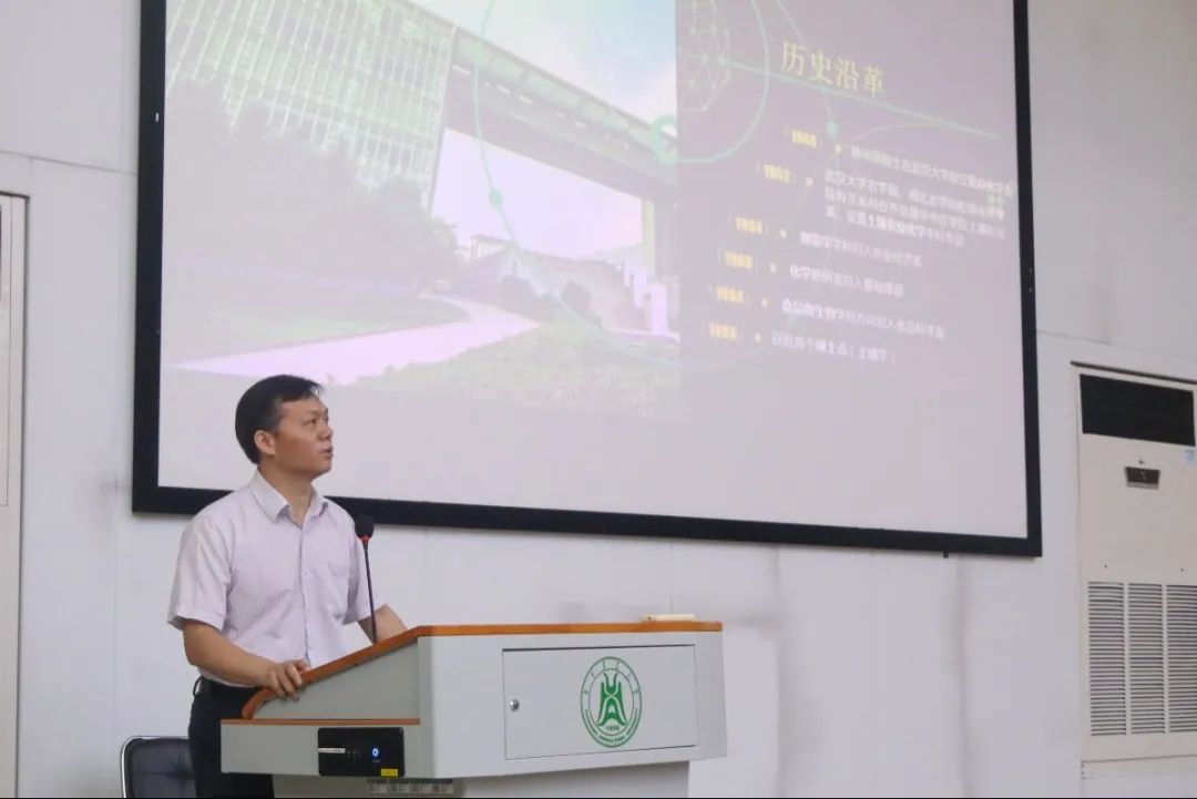 谭文峰首先介绍校情院情。他讲述了公司80年代至今涵盖的专业的变化,表示“资环人不断学习创新,与时俱进,是公司事业发展重要的学科增长点”,从历史沿革、人才培养、团队队伍、科学研究、合作交流等方面系统地讲解了公司基本情况。在谈到公司发展的新机遇时,谭文峰特别指出公司参与省三普组织机构组建,公司共有国家级三普专家3人、湖北省三普领导小组成员1人。最后他寄语新生:“希望未来在田间地头也能看到你们的身影。”