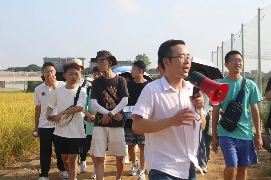随后,陆老师通过习近平总书记在五四青年节的回信对象“以中国农大为首的、科技小院的、一线的员工”强调同学们要把论文写在祖国大地上。离开微肥楼,他把同学们带往了试验田,向同学们介绍具体的植株情况,一一讲述了植物必需的17种营养元素。现场氛围轻松活泼,大家漫步而谈,脚下是黄土铺散,四周是稻浪轻漪,午后微阳洒在大家身上,尽显华农风采。