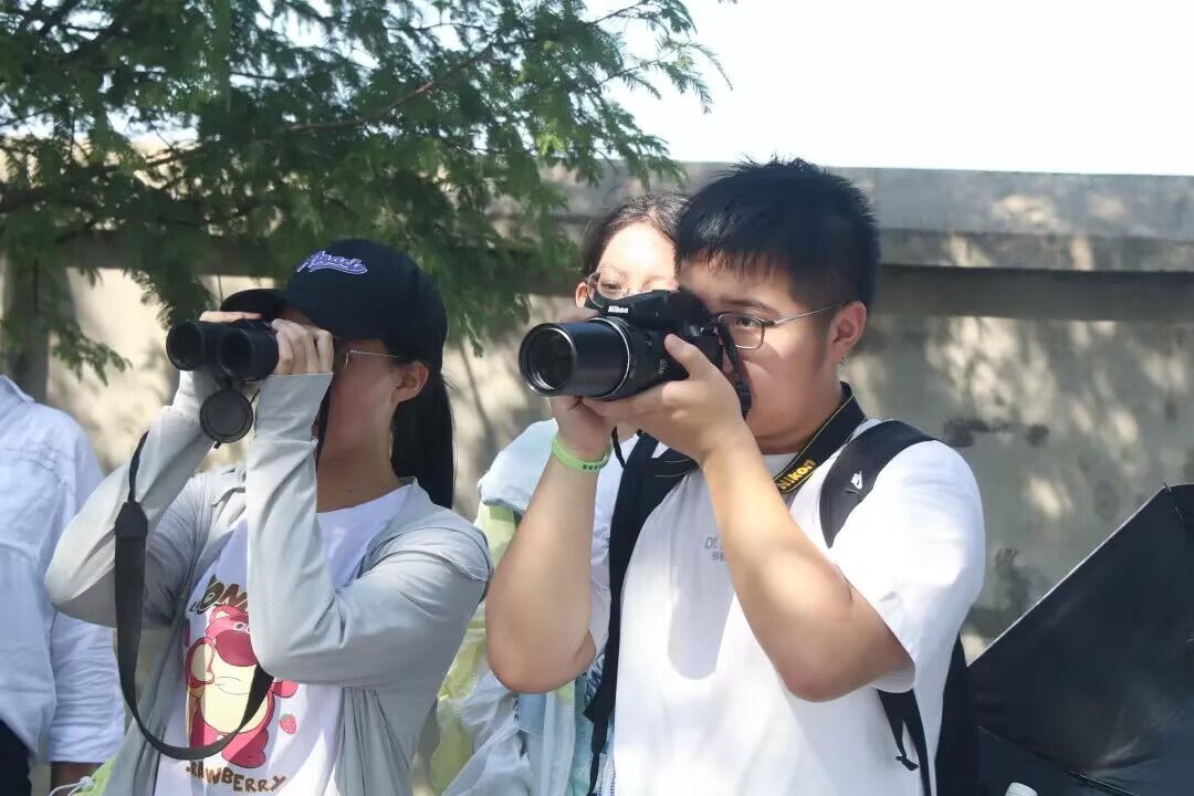 早上8点,专业体验活动“狮山鸿渐”——观鸟活动在校园内有序进行,新生们仔细阅读《湖北常见鸟类导赏手册》,拿着望远镜小心仔细地观察鸟类并认真地听绿色协会讲解员介绍,通过现场主持人谭米佳的科普,在野芷湖,他们认识了珠颈斑鸠、喜鹊、黑卷尾等数种栖息于狮山的绿色使者。