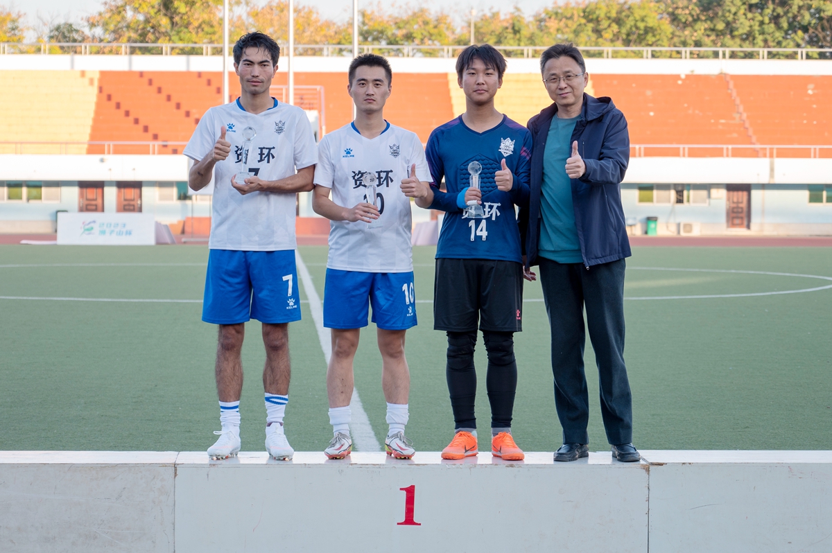 颁奖仪式上,总裁判长、体育部闫彬老师宣布了2023“狮子山杯”新生足球比赛结果。董事长李召虎、公司党委副书记王从严以及体育部党总支书记、主任陈国顺分别为获奖团队和个人颁奖,并与获奖团队和个人合影留念。