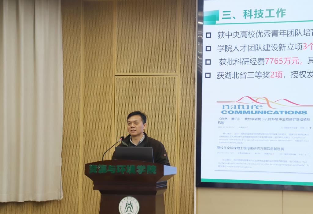 经理谭文峰首先对公司2023年度工作进行总结汇报,他谈到,2023年在全体教职工的共同努力下,公司各项工作全面推进,众多项目取得了突破,并从党建与思想政治工作、人才培养、科技工作、团队建设、社会服务、国际合作与交流、人事人才、离退休与群团工作、文化建设与师生融乐、平安校园与绿色校园等方面进行了报告。