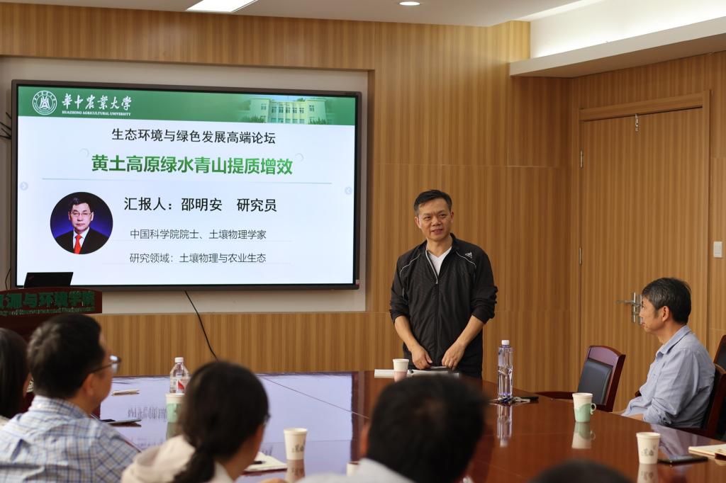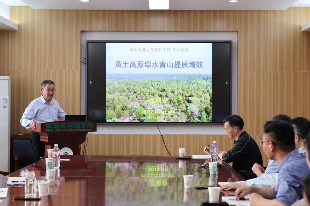 学术报告结束后,公司领导及教师就公司团队建设和未来科学研究方向与邵明安进行探讨交流。邵明安鼓励师生秉持“报国为民”的情怀,牢记“人才、平台、项目、成果、应用”十字方针,并强调要注重基础和前沿,发挥资环院在农业资源与水土保持领域的特色和优势,为国家培养优秀专业人才。