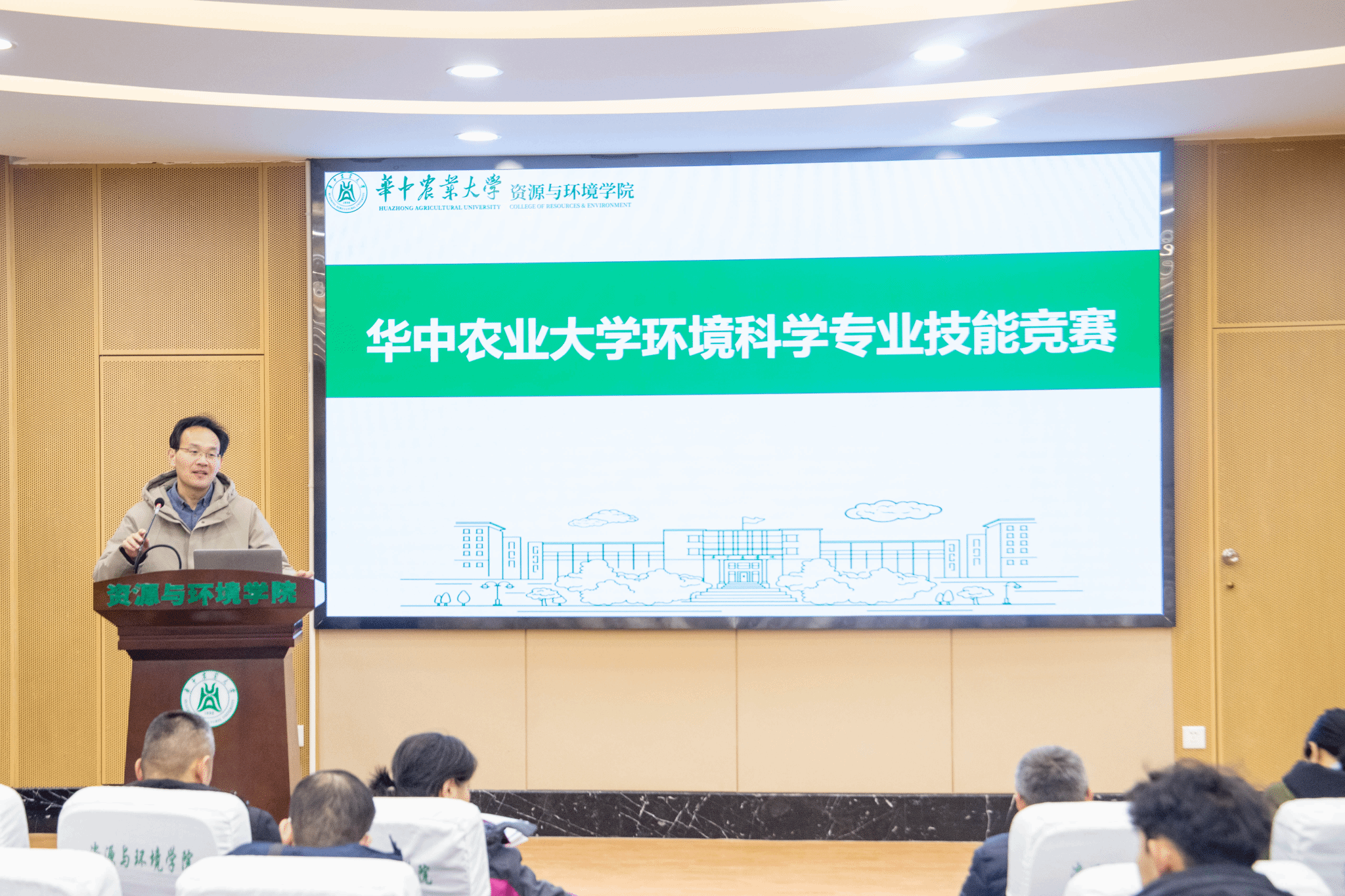 首先,熊海林就本次环境科学专业技能竞赛致辞,对各位同学积极参赛表达了肯定,勉励同学们“以质图强,融创致新”,并以此次竞赛为契机,加强专业技能的锻炼和提升团队协作能力,为将来发展奠定良好的基础,共同为祖国环保事业贡献力量。