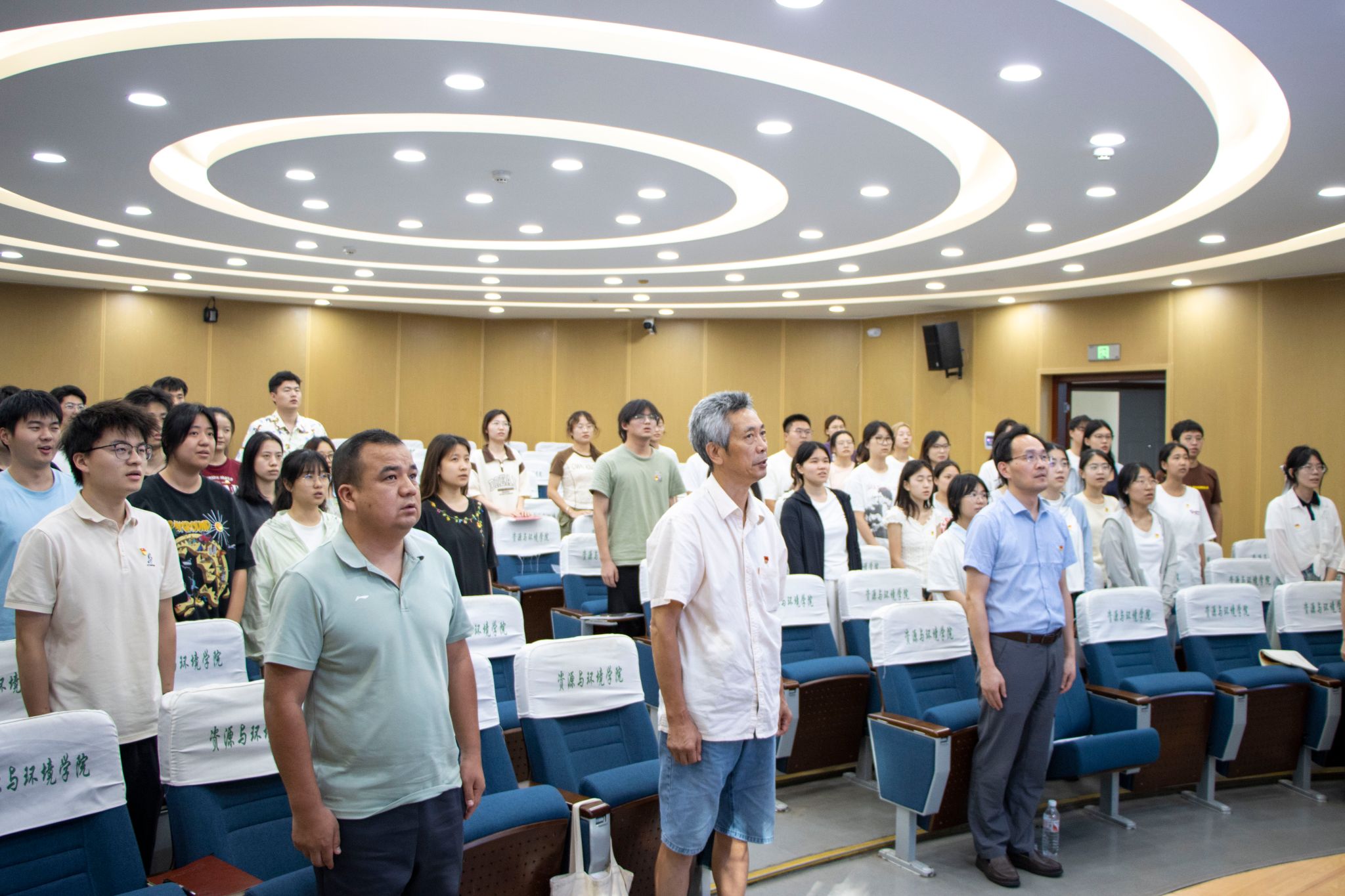 大会在全体成员奏唱《国际歌》中拉开序幕。首先,熊海林、宋能文分别为研究生、本科生预备党员颁发入党通知书、党徽以及《中国共产党章程》等材料。接着,在徐玲莉的领誓下,全体预备党员面向党旗庄严宣誓。
