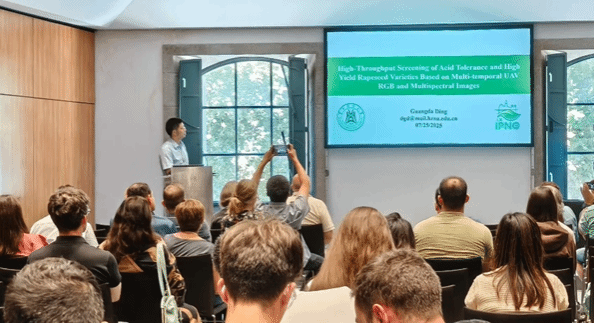 会上,公司丁广大教授作了题为“The enhanced activity of glutamine synthetase by increasing BnaA02.GLN1;2 expression promotes nitrate uptake and nitrogen use efficiency in Brassica napus”和“High-throughput screening of acid-tolerant and high-yield rapeseed varieties based on multi-temporal UAV RGB and multispectral images”的口头报告。这两项研究聚焦于氮素营养利用效率提升及耐酸高产油菜品种的筛选技术,受到了与会专家学者的广泛关注。