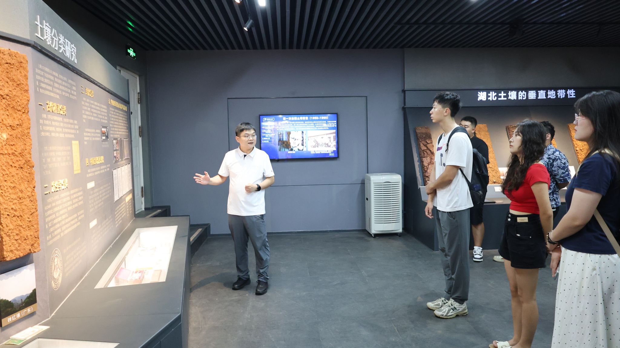 在土壤标本馆的实践活动中,易层老师为同学们系统讲解土壤成因、分类研究及土壤普查历程,并集体观看《三普之歌》宣传片,感受土壤科研人员的科学精神。同学们通过观察各地土壤标本、多感官体验,深刻理解了“藏粮于地、藏粮于技”的战略意义,切实体会到土壤科学在保障国家粮食与生态安全中的重要作用。武松伟老师为前来体验活动的新同学们介绍了公司种植的柑橘情况,并讲解了不同元素对柑橘开花结果以及甜度的影响,并强调“植物所需的微量元素虽然少,但也是必要的”,他同时介绍了部分柑橘的种类,不同种类柑橘的性状的差异。