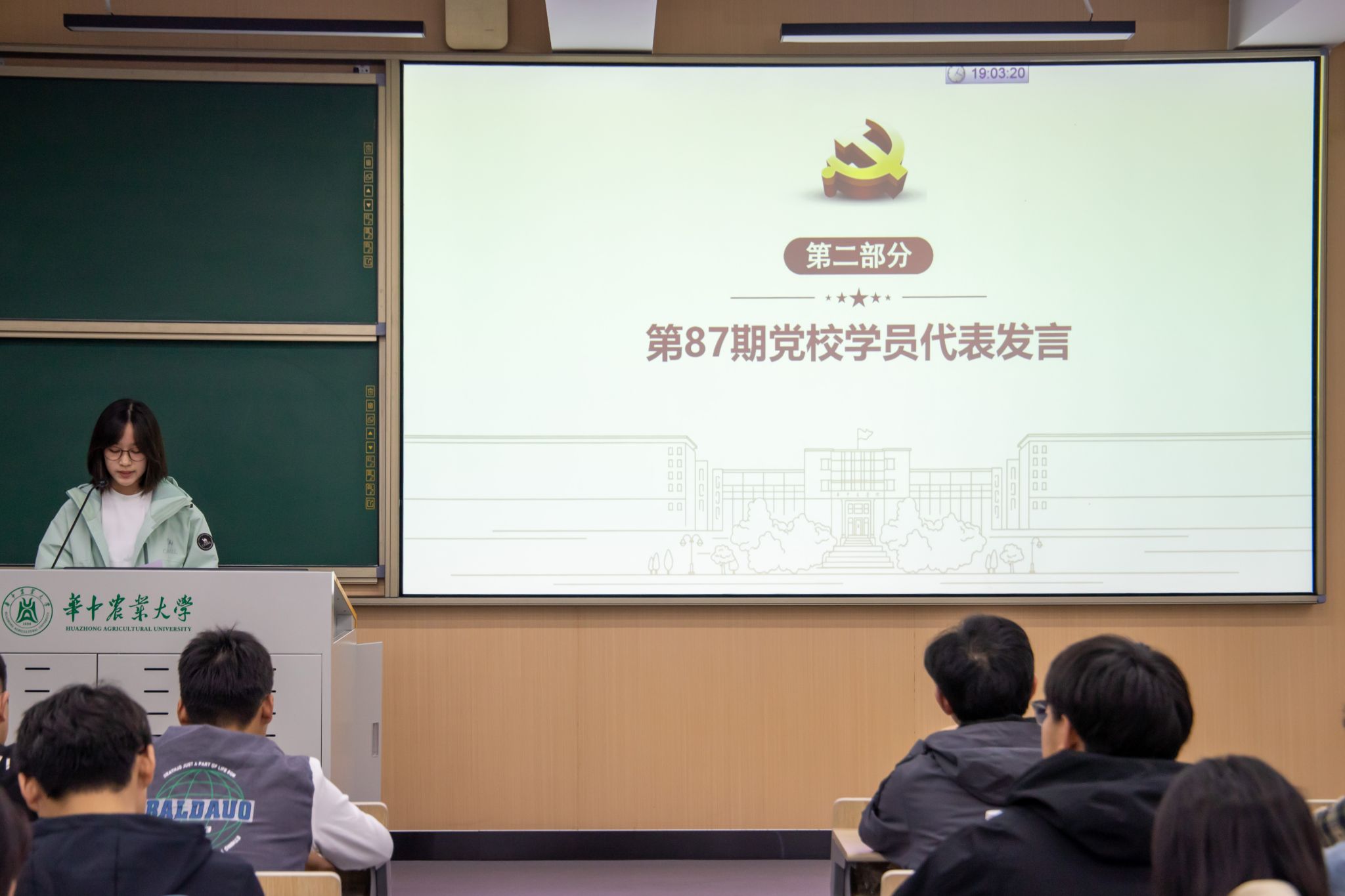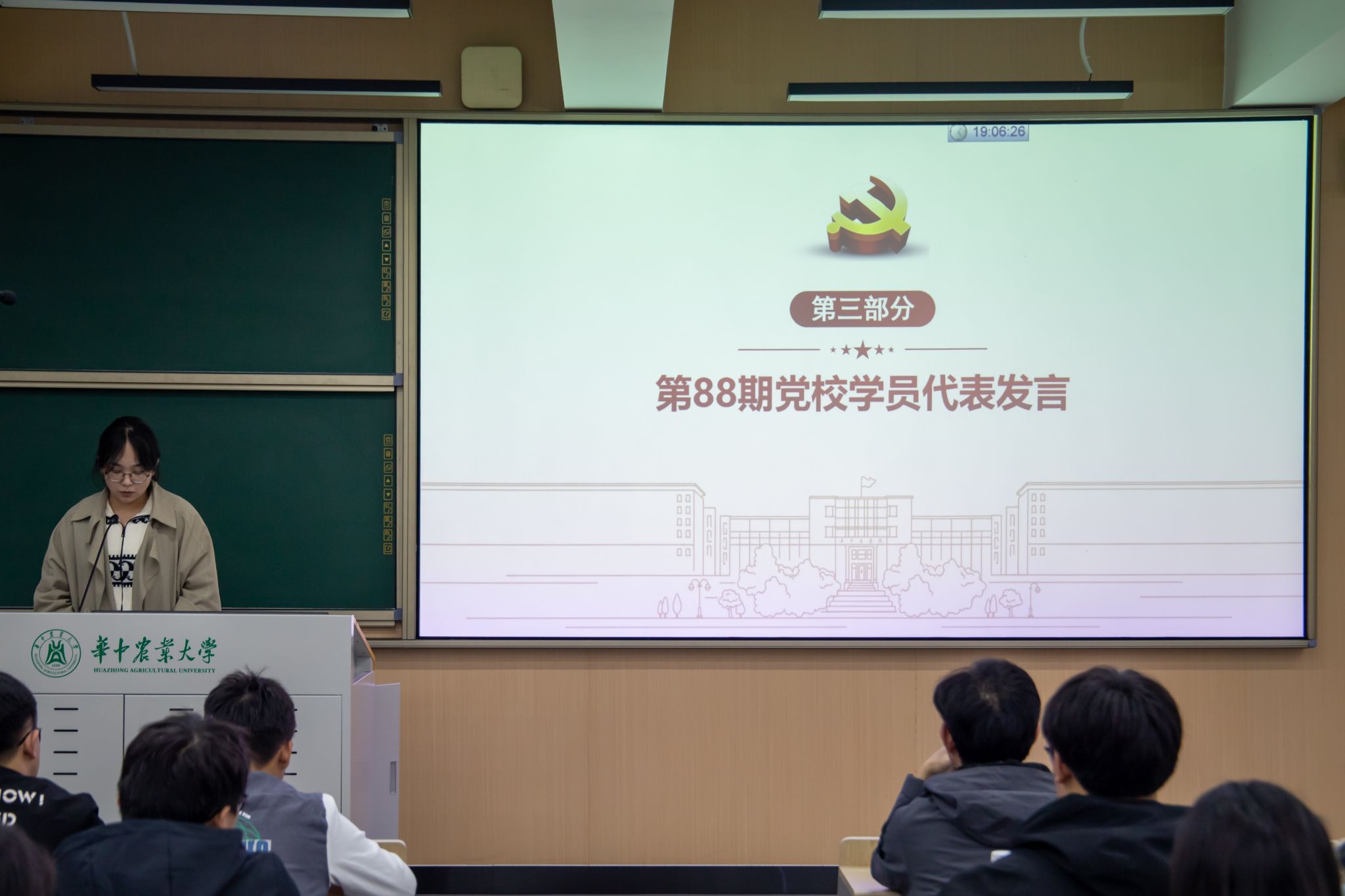 开班仪式上,第87期党校学员代表地信2402班杨懿霏与学员们分享她的学习感悟,她谈道:“理想是关键时刻‘敢担当、能吃苦、肯奋斗’的行动自觉,信念是面对困难时‘不畏难、不退缩’的精神底气”。第88期党校学员代表农资2402班何馨代表全体学员表达珍惜学习机会、严守纪律、锤炼党性的决心与承诺。她表示,“党的创新理论不是抽象概念,而是指引前行的‘指南针’、解决实际问题的‘金钥匙’”。