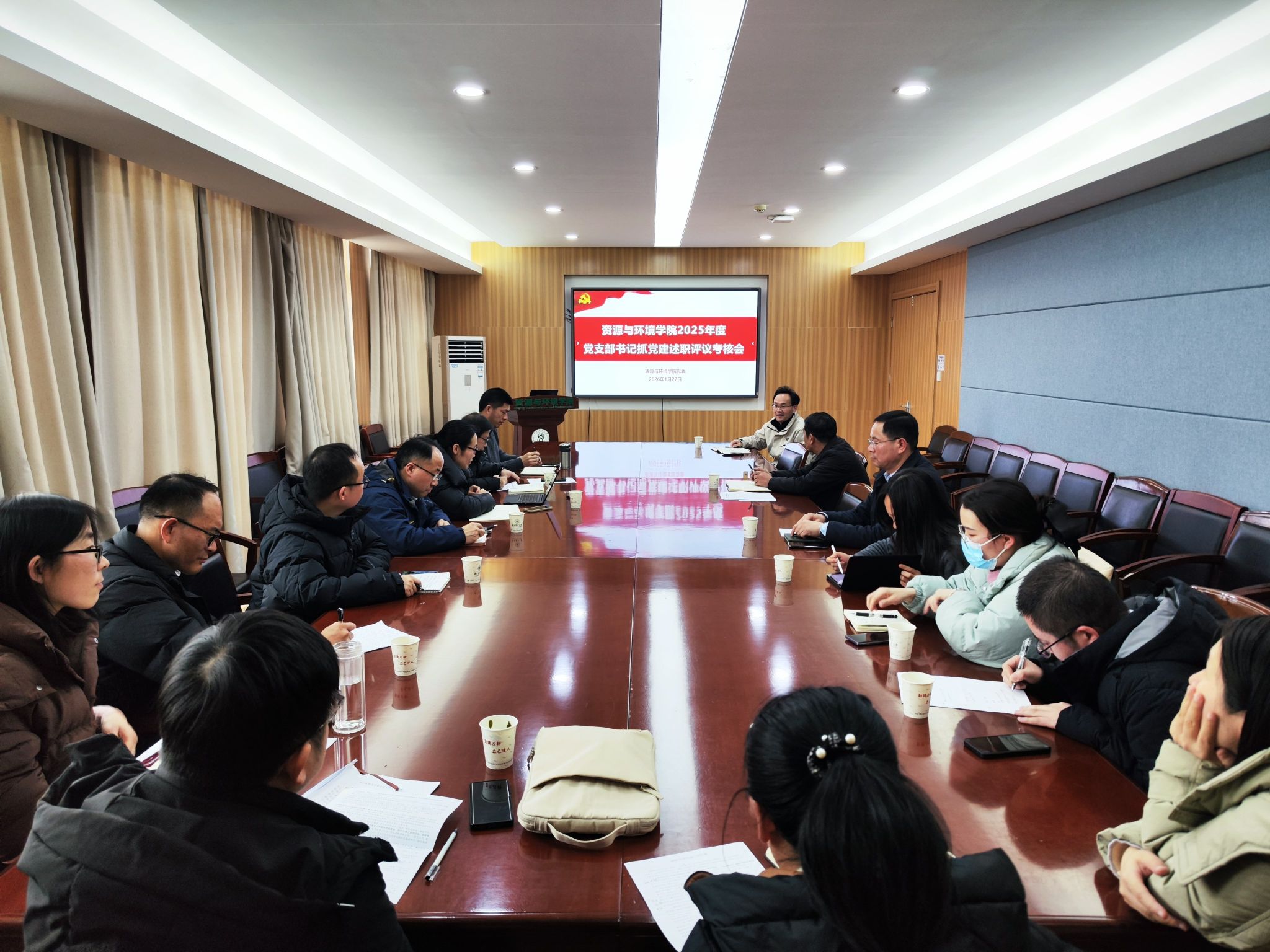 1月27日下午,公司2025年度教工党支部纪检委员述职和党支部书记抓党建述职评议考核会在主楼315会议室召开。公司副处级纪检监察员刘瑞欣,公司党委委员、各教工党支部支委及党员代表参加会议。公司党委书记黄依群主持会议。