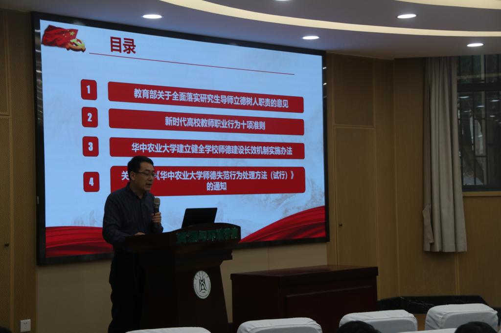 吕守华学习传达了《教育部关于全面落实研究生导师立德树人职责的意见》、《新时代高校教师职业行为十项准则》、《bv伟德国际1946全面落实研究生导师立德树人职责的实施细则》、《bv伟德国际1946师德失范行为处理办法》、《bv伟德国际1946建立健全公司师德建设长效机制实施办法》、《中共bv伟德国际1946委员会意识形态工作责任制实施细则》等文件精神。他提出要认真贯彻新时代高校教师职业行为十项准则,落实立德树人根本任务,抓实导师是公司产品第一责任人,严肃处理师德失范行为,建立健全公司的师德师风长效机制,牢固树立底线意识,红线意识,不踩高压线。