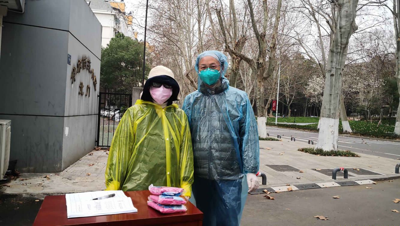 2020年2月24日,新冠肺炎疫情阻击战最“吃紧”的时候,西苑小区北门进入“战时状态。史志华教授和同事们戴上口罩、雨衣、手套和头套,为进出小区的师生量体温、作登记,动作熟练而敏捷。