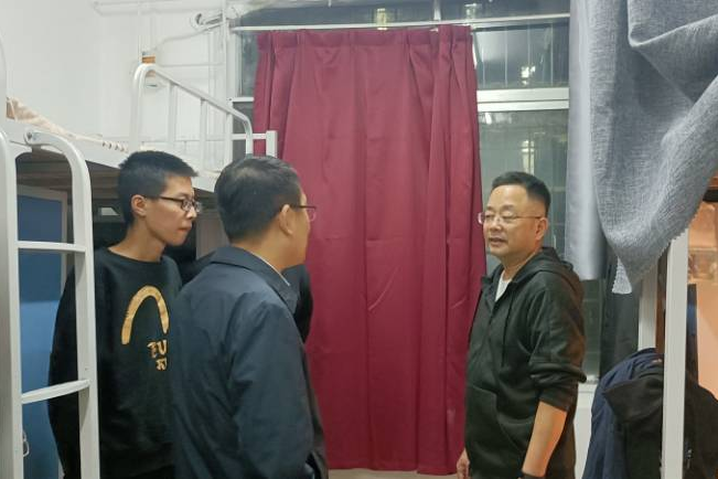 本科新生入校即将“满月”的十月中旬,金秋的狮子山上阴雨绵绵。一个月以来,青平始终挂念员工在宿舍的学习生活设施是否得到保障以及是否会受到潮湿环境的影响。10月14日晚,青平再次前往公司位于博园三栋的新生宿舍,了解员工入学后的学习、生活情况,公司党委书记吕守华、本科生院教学运行管理处处长王春潮及后勤保障部有关负责同志陪同前往。