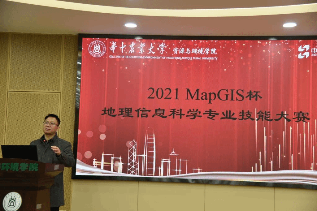 12月18日上午,2021 MapGIS杯地理信息科学专业技能大赛决赛在西附楼报告厅举行。公司副经理石磊教授、资源环境信息工程系主任王天巍教授、武汉中地数码科技有限公司副总裁黄胜辉、武汉新中地教育科技有限公司经理方胡朝及资源环境信息工程系全体教师受邀出席比赛并担任比赛评委。