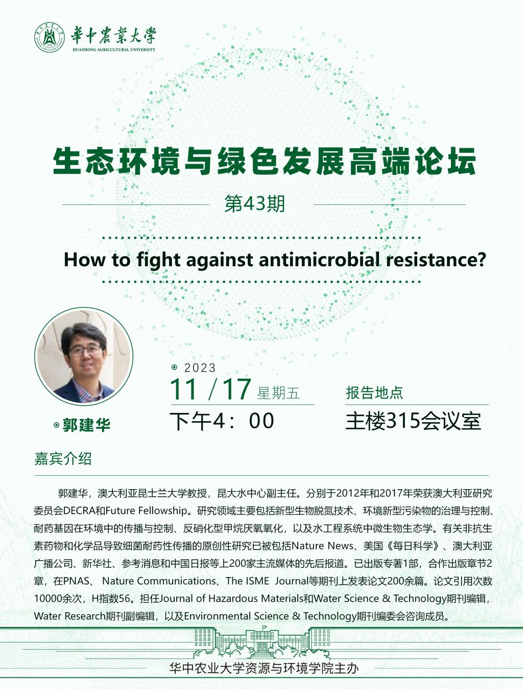 【高端论坛】43期:How to fight against antimicrobial resistance?