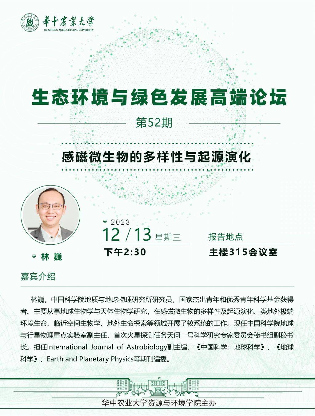 上一篇:【绿博讲坛】第290期:趋磁细菌生物矿化和感磁的调控机制及其地学应用