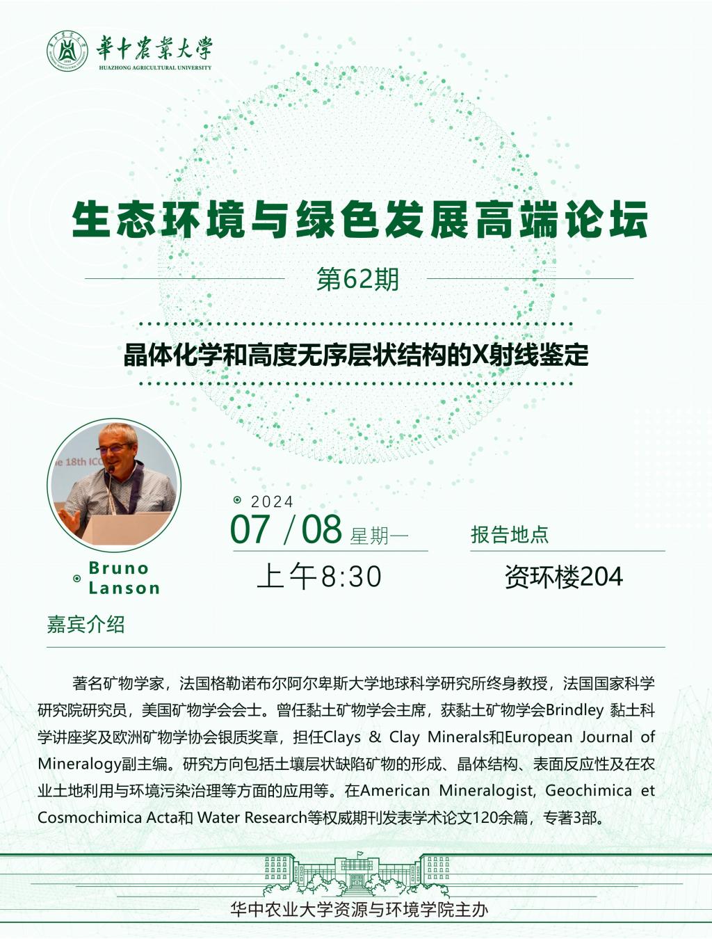 【高端论坛】第62期:晶体化学和高度无序层状结构的X射线鉴定