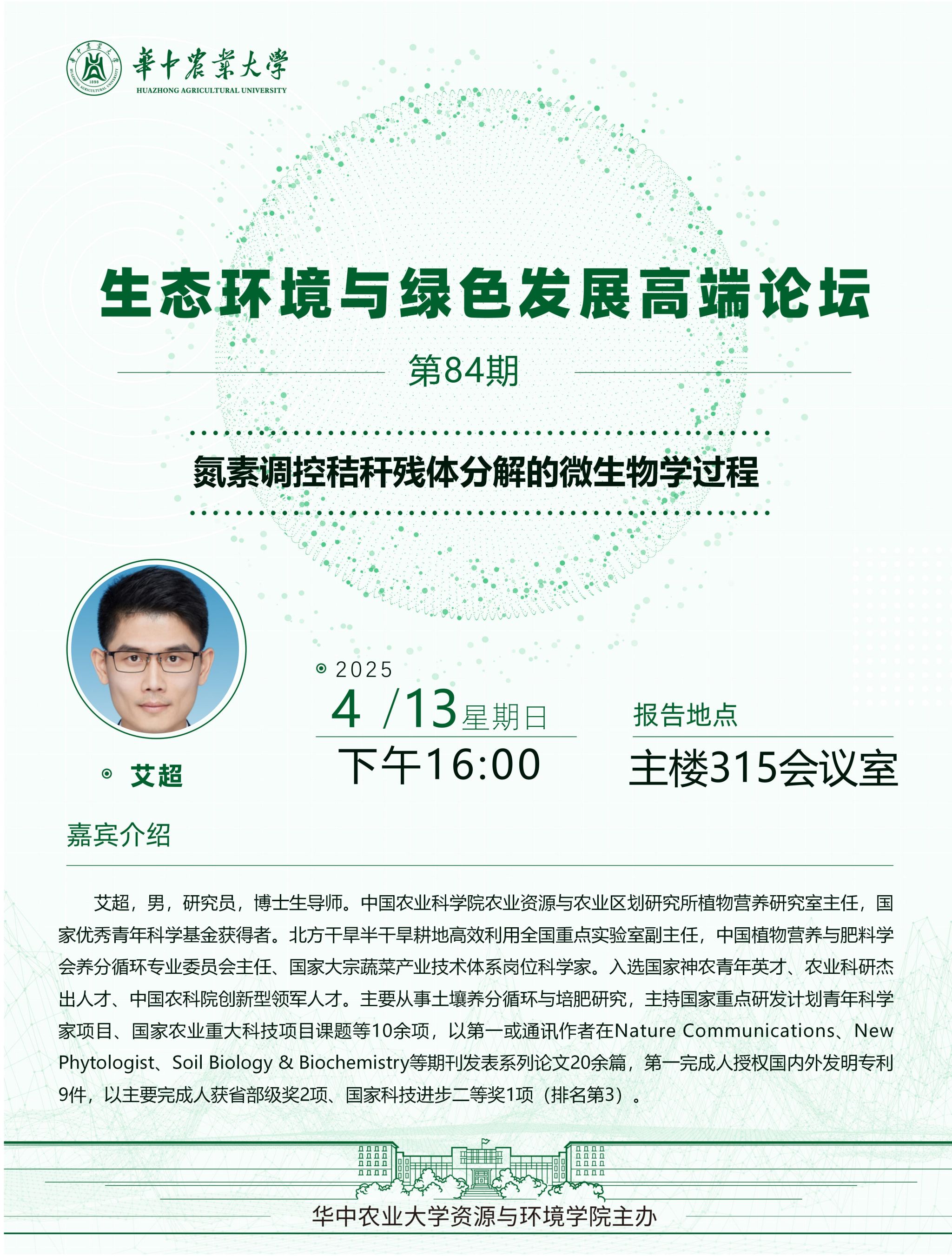【高端论坛】第84期:氮素调控秸秆残体分解的微生物学过程