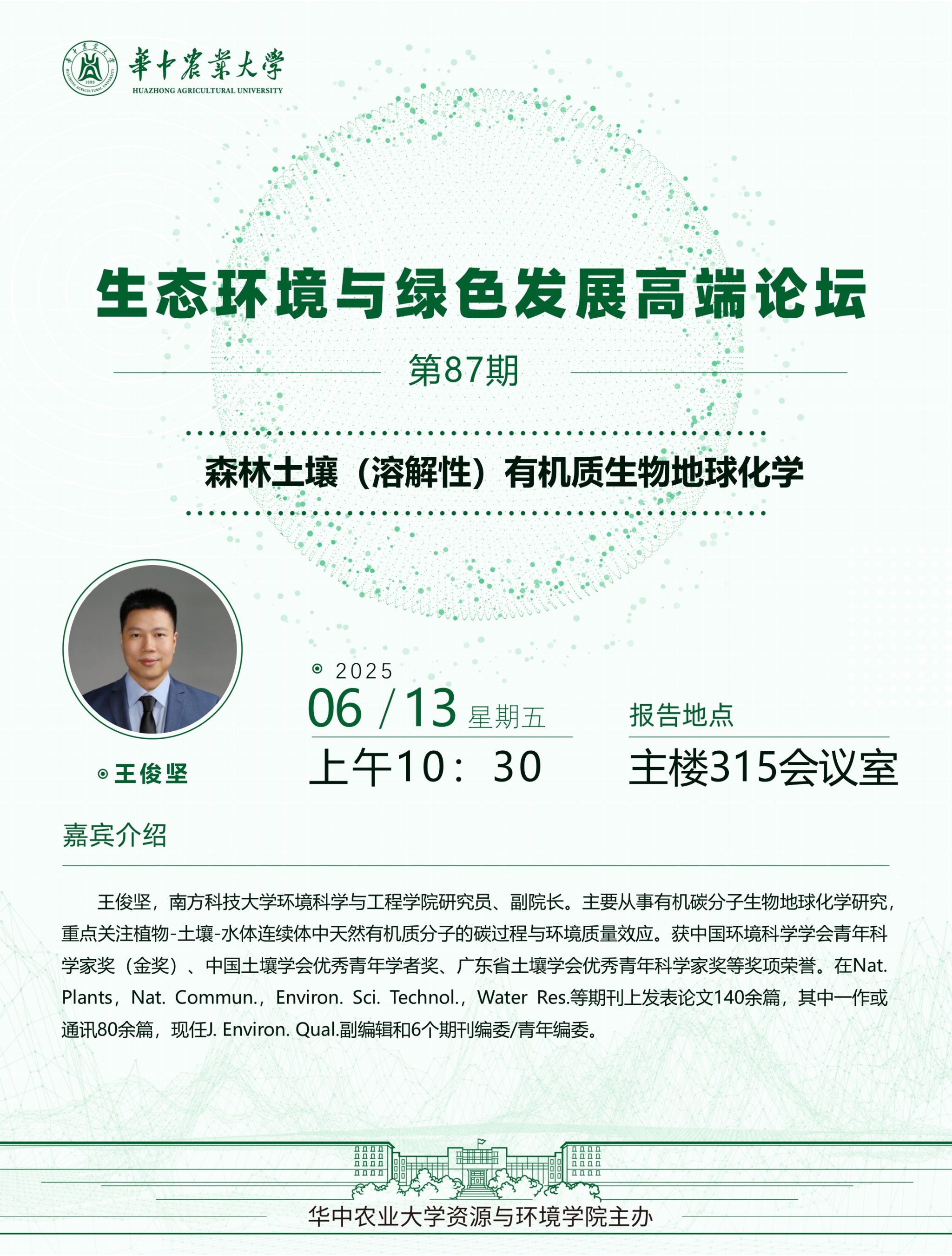 【高端论坛】第87期:森林土壤(溶解性)有机质生物地球化学