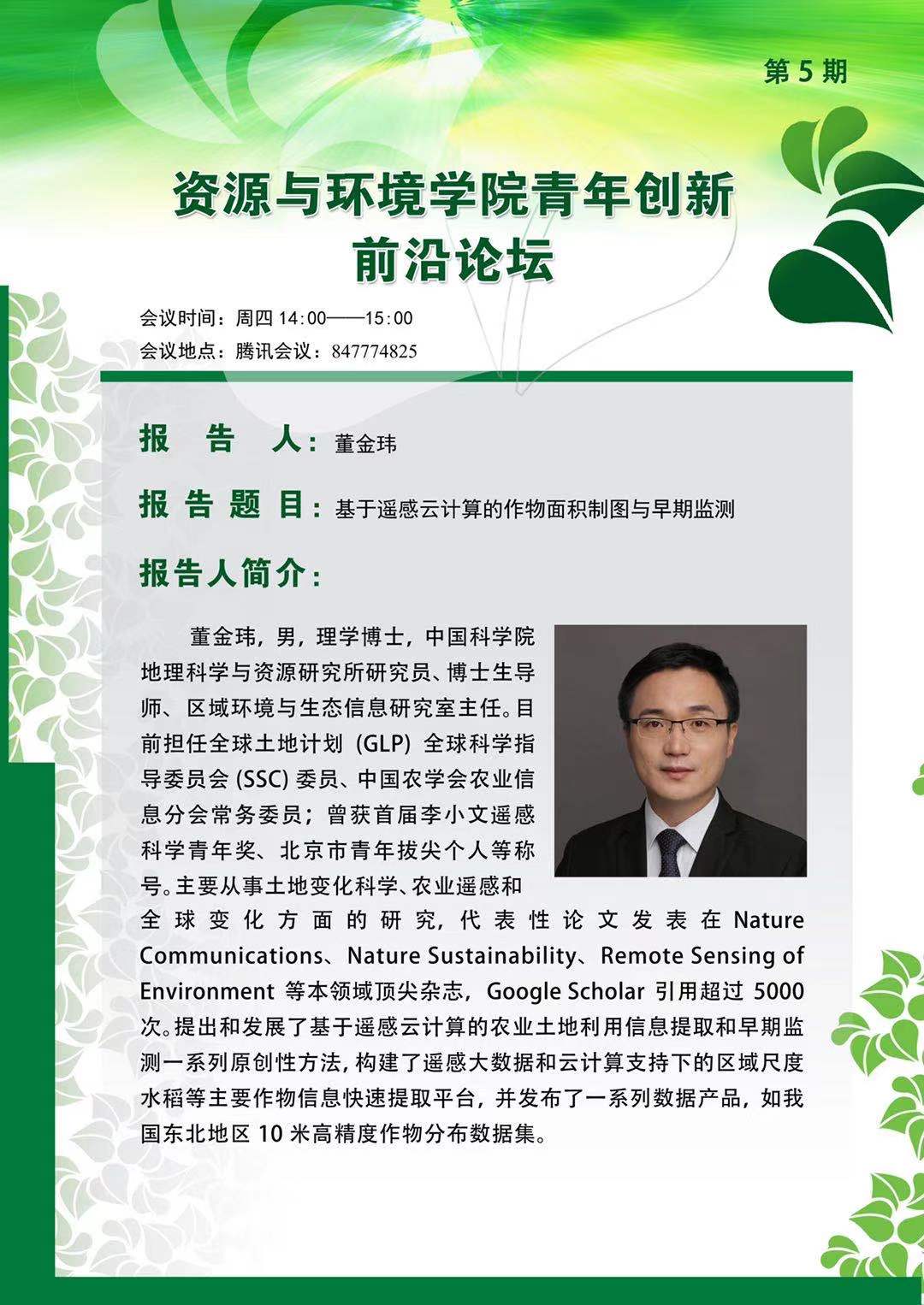 【高端论坛】农业-生态-遥感学科交叉讨论会