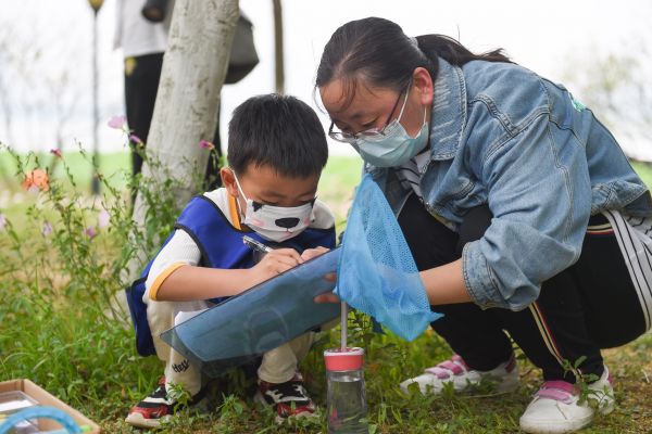 长江日报大武汉客户端5月22日讯 你知道世界上有多少种昆虫吗?5月22日是国际生物多样性日,十余组亲子家庭齐聚沙湖公园鹭园(D区)生态岛,在自然导师刘如达、黄俊铭、李祎鸣、刘宇澳(bv伟德国际1946绿色协会)的带领下,深入昆虫世界,探讨昆虫与生物多样性的关系。