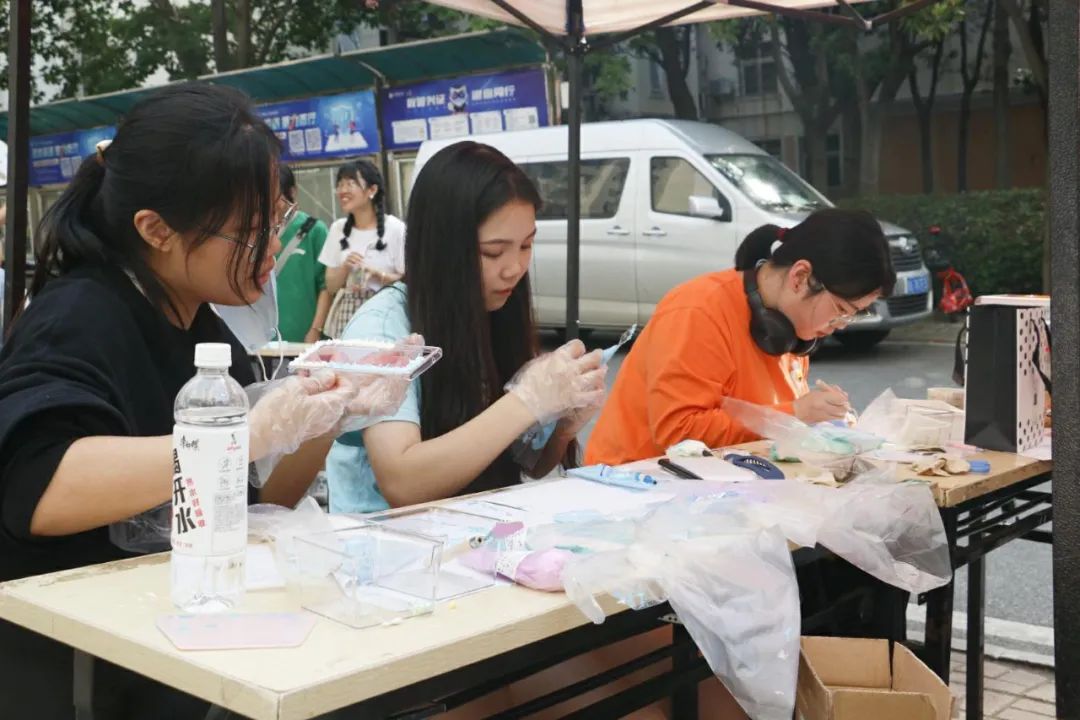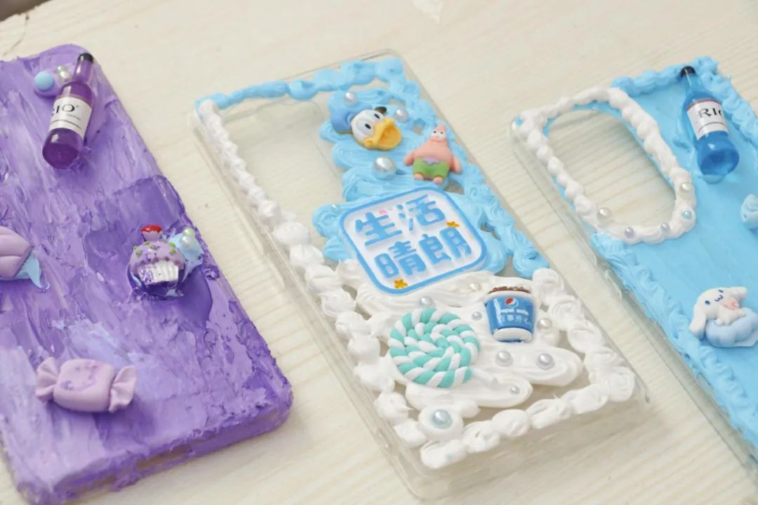 “DIY手机壳赠师友”活动早在线上报名时便非常火爆,预约名额一经放出便被一抢而空。在活动现场,工作人员们为大家准备了各种颜色的奶油胶以及精致可爱的小配件。预约的同学们在工作人员的协调下分批来到现场进行手机壳的制作,在制作过程中,同学们充分发挥想象,化身小艺术家,诠释着对师友满满的感恩与爱。