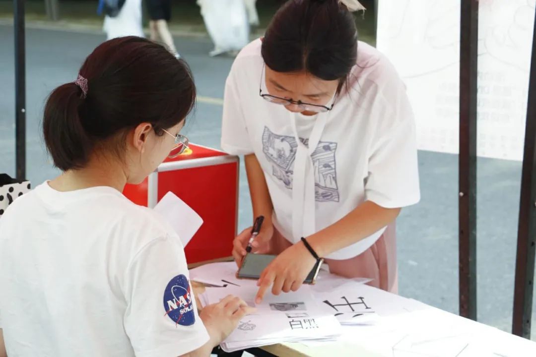 当“感恩DIY”进行得如火如荼时,引人驻足的“成语猜猜猜”活动也在火热进行中。为加深同学们对诚信感恩文化的认识和理解,也为了让大家感受到中国传统成语的魅力,工作人员们提前准备了多个与诚信感恩相关的成语图片,参与活动的同学们需要根据图片猜成语,成功通关的同学可以自主制作奶油胶发卡并赠与自己或他人,这种活动方式寓教于乐,也增强了同学们在此次诚信感恩活动中的参与感。