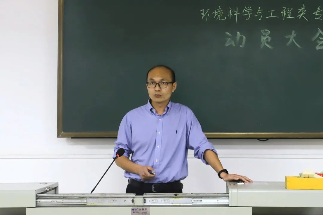邱国红向同学们介绍了环境科学的发展方向与目标。他以自己参与的项目——电化学水处理为例,向同学们讲解环境科学的研究内容。同时他也指出,专业拥有强大的团队力量与教学科研平台,在就业、考研中选择的范围广,占据一定优势。