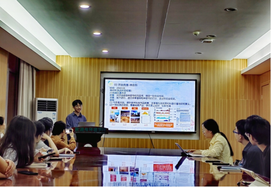地信2001班许涛首先结合申报SRF、本创立项答辩、做华癸项目等方面分享了他的科研、竞赛经历,在做SRF方面他提醒同学们比起科研项目的实际操作,思路清晰更为重要。在竞赛上他分享了参加湖北省翻译大赛、互联网+和神农杯的经历,并告诉同学们在比赛中选择参加就一定要坚持。