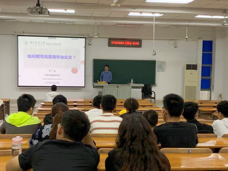培训会后,农资1901班覃启龙同学谈到:“老师们分享的内容确实解了我的燃眉之急。我印象最深的是丁老师在谈及结果与讨论时,为我们细致地讲述了图和表的写作细节,如中英文标题、三线表制作、图和表在文章的位置等等细节性问题。通过这几场培训,我受益良多,论文写作压力也缓解了不少。”