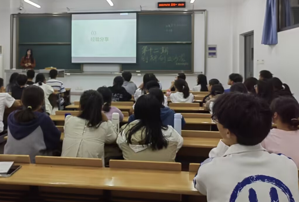 而周楠宇则是以公司获奖项目为例,向同学们介绍了两大创新创业类竞赛——中国“互联网+”创新创业大赛和“挑战杯”全国老员工系列科技学术比赛,她指出,不管从专业角度,认可度等其他方面考虑,这两大创新创业类竞赛都值得同学们在大学阶段努力尝试。
