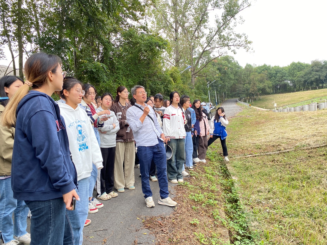 中国科学经理沙农业环境观测研究站围绕农业生产潜力挖掘与环境保护及污染治理协调发展,重点开展区域农业绿色高质量发展与农业环境保护与污染治理、土壤健康与污染修复等工作。沈建林老师带领同学们参观了研究站内的肉牛养殖场、养殖粪污固液分离及还田应用的定位试验,使用有机肥替代50%的化肥;结合养殖污水绿狐尾藻湿地组合处理技术、生物基质池-绿狐尾藻生态湿地消纳技术、农田氮磷径流流失污染及防控等应用案例,系统介绍了绿狐尾藻在农业农村水污染清洁治理中的应用。同时,绿狐尾藻又是一种高蛋白的水生植物,可以用作畜禽的优质饲料。这种以小流域为单位的“种养结合”模式是“绿色循环、生态高值”的农业经营模式的真正体现。