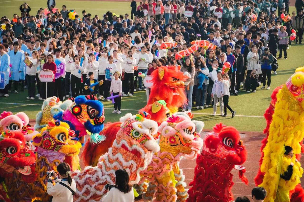 入场式结束后,现场举行了庄重的升旗仪式,全体师生起立,高唱国歌。随后,舞龙舞狮表演将现场气氛点燃,全民健身体操更充分激发了广大师生运动积极性。