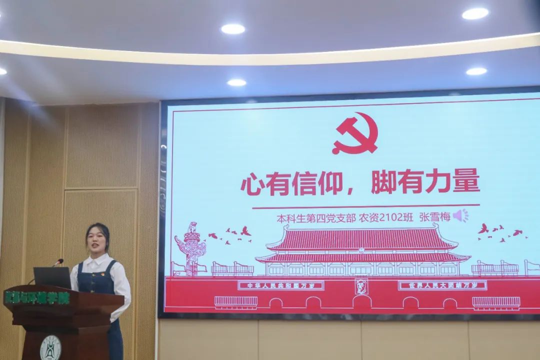 “如果信仰有颜色,那一定是中国红。”本科生第四党支部张雪梅以“心有信仰,脚有力量”为题进行分享,在悠扬舒展的背景音乐中,关于对信仰的理解,她饱含深情娓娓道来。对共产主义的信仰,对中国特色社会主义的信念,是共产党人的政治灵魂,是共产党人经受住任何考验的精神支柱,张雪梅讲到:“坚定理想信念,必先知之而后信之,信之而后行之。”本科生第二党支部张骏辉则以“红旗指引前进方向”为题讲述了云南革命的故事,重重磨难中,共产党人表现出的坚定信念令人肃然起敬。他结合自己在公司国旗护卫队的经历,真诚地说道:“我们要把对党的忠诚践行到实践行动中。”