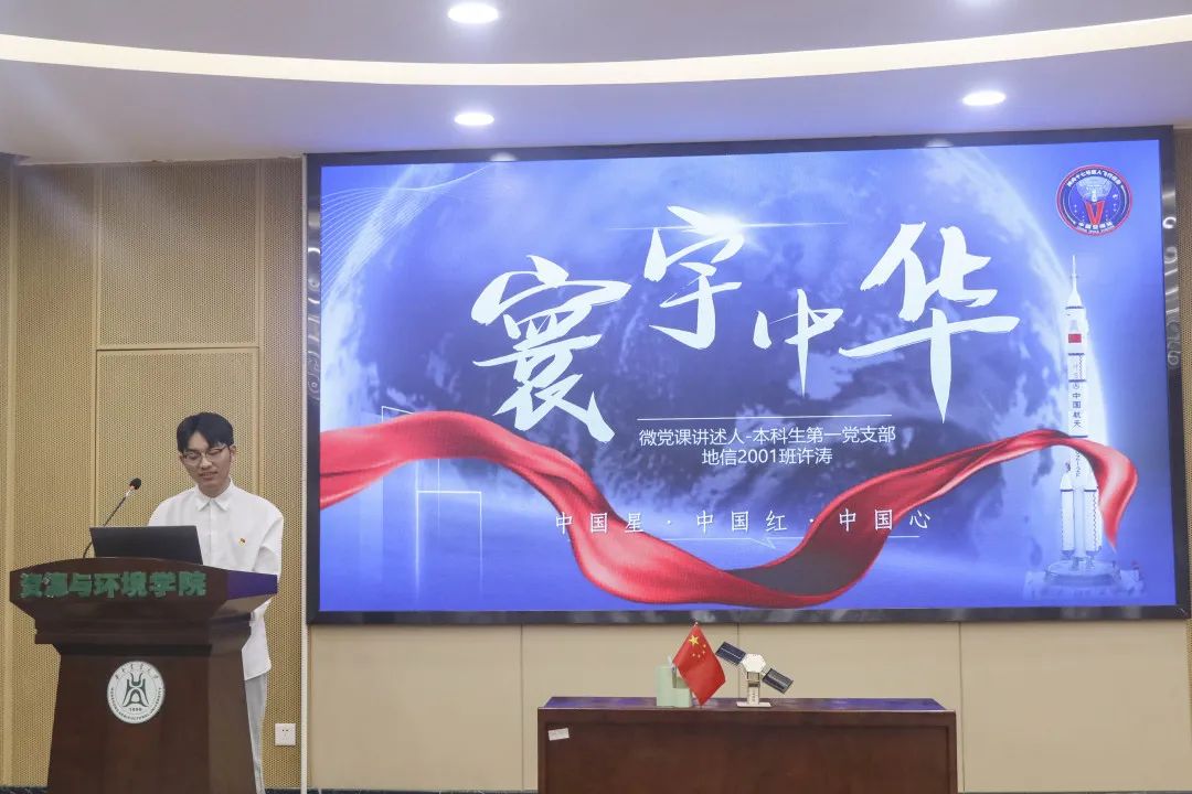 宇宙无穷,吾辈有梦。本科生第一党支部许涛以“寰宇中华”为题,围绕“中国星”“中国红”“中国心”三个方面讲述中国共产党人精神谱系之一——载人航天精神。从东方红一号发射升空,中华民族拉开了千年飞天梦的第一场银幕,到神舟五号载着杨利伟成功着陆,中国人第一次在浩瀚太空留下了身影,再到如今越来越多印刻着五星红旗的飞船进入太空,变的是时代,不变的是中国人探索寰宇、圆梦飞天的中国心,以及中国共产党人坚持不懈的载人航天精神。