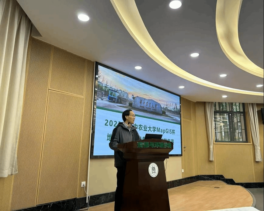 公司党委副书记熊海林出席并致辞,武汉中地数码科技有限公司副总裁黄胜辉、中地数码集团新中地教育经理方胡朝,资源环境信息工程系专业主任刘诗诗教授及资源环境信息工程系全体教师受邀出席比赛并担任比赛评委。