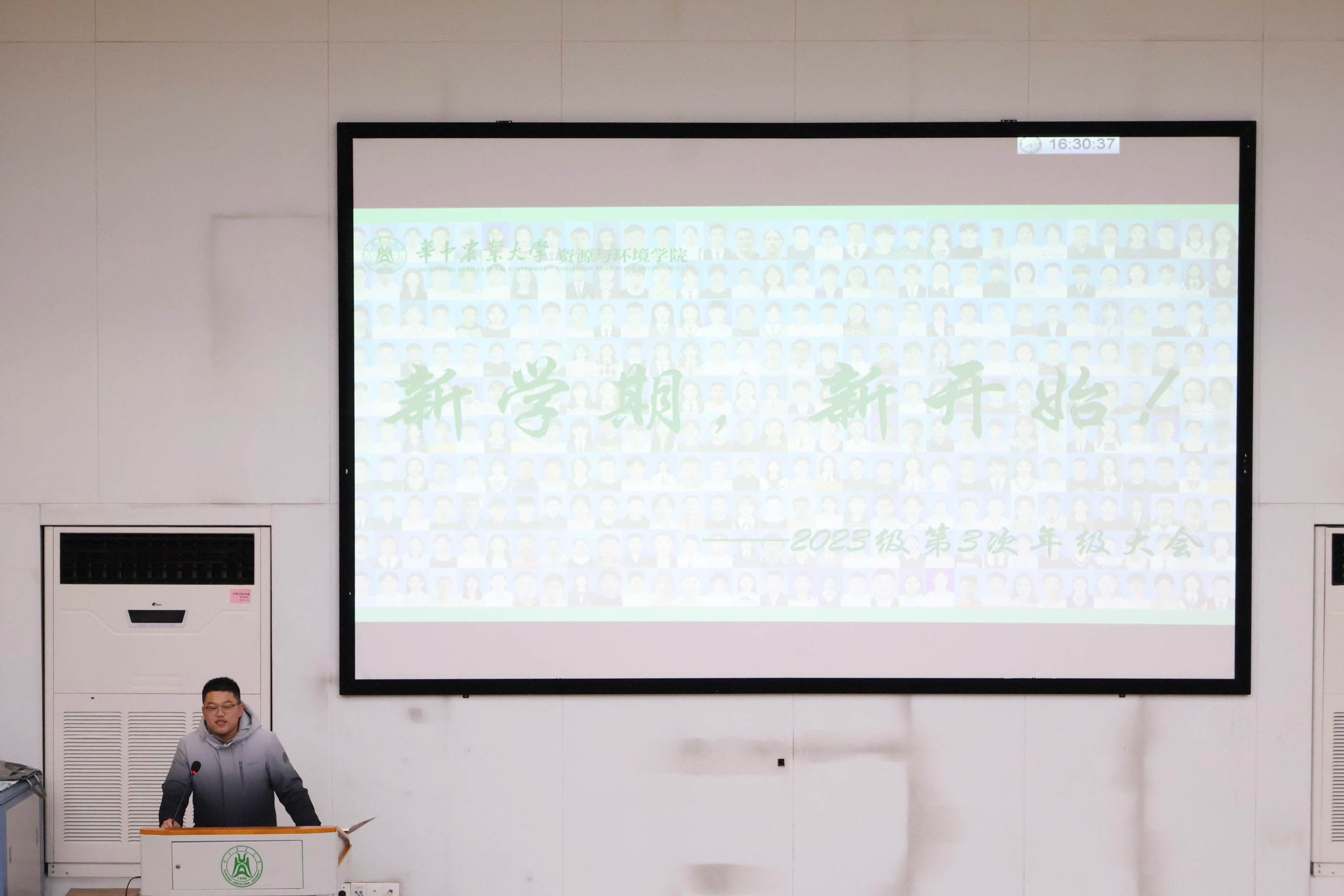 2月29日下午16:30,公司于第三教学楼s1报告厅召开2023级本科生年级大会。公司辅导员韩峥主持本次会议,公司党委副书记熊海林为此次会议作结语。