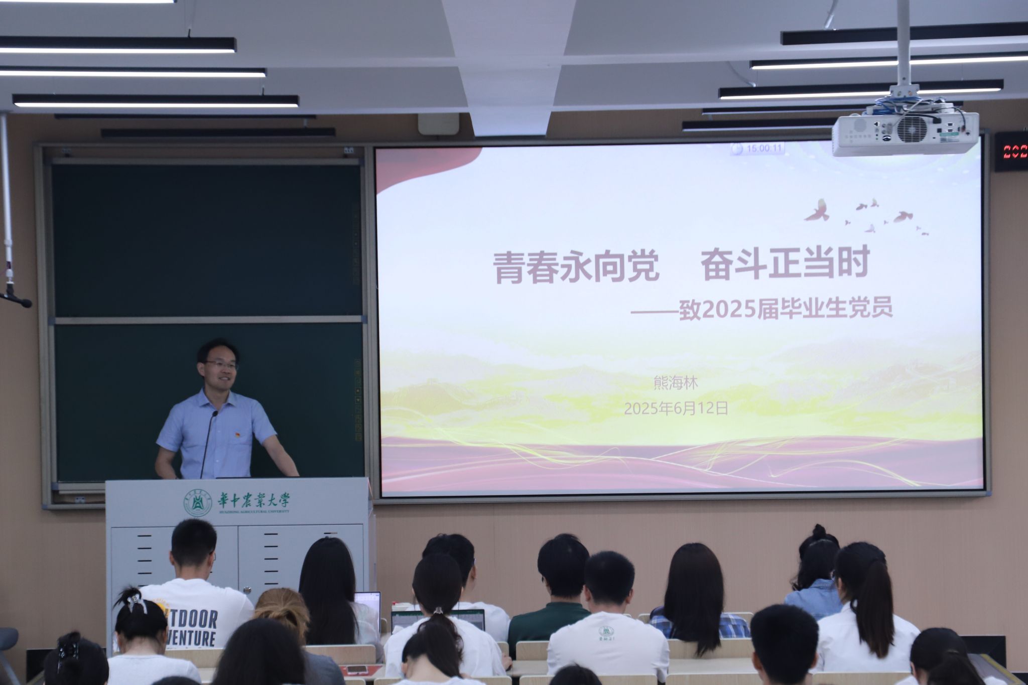 6月12日下午,公司在二教301举行2025届毕业生党员教育大会,公司党委副书记熊海林以“青春永向党,奋斗正当时”为主题,通过党性教育、榜样引领、纪规教育多维赋能为毕业生党员上好离校“最后一堂党课”。