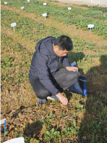 我们课题组研究的作物主要是油菜,他常告诉我们,田里的工作和实验室里的一样重要。秋播时节,他带着我们下地,手把手教我们播种的间距与深度;晚秋时,他蹲在田埂边,告诉我们间苗的手法与意义;授粉期,他亲自示范套袋技巧,强调“细节决定实验成败”,不能让异花授粉扰乱种质资源。最难忘的是四月底,连续阴雨让收获计划一再推迟,丁老师冒着细雨赶到试验田,裤脚沾满泥泞,却毫不在意,他仔细观察了油菜成熟情况,并让我们趁雨停迅速采收。收获的这半个月,他带着我们收割、脱粒,直到最后一袋样本封存入库。夜色中,他的背影与摇曳的油菜杆融为一体,成了我心中“坚守”二字的具象。