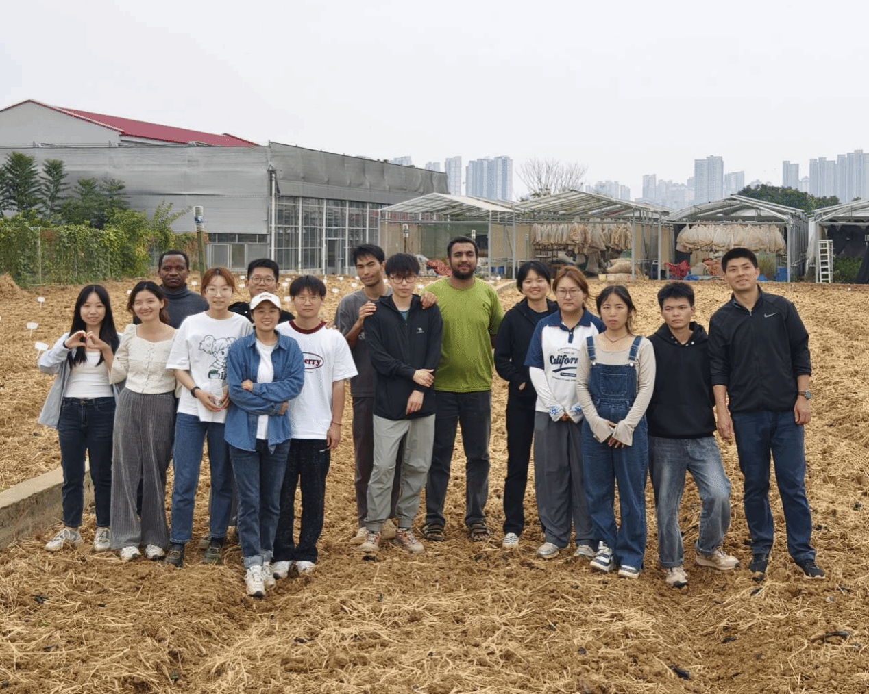丁广大老师与员工们播种油菜后合影