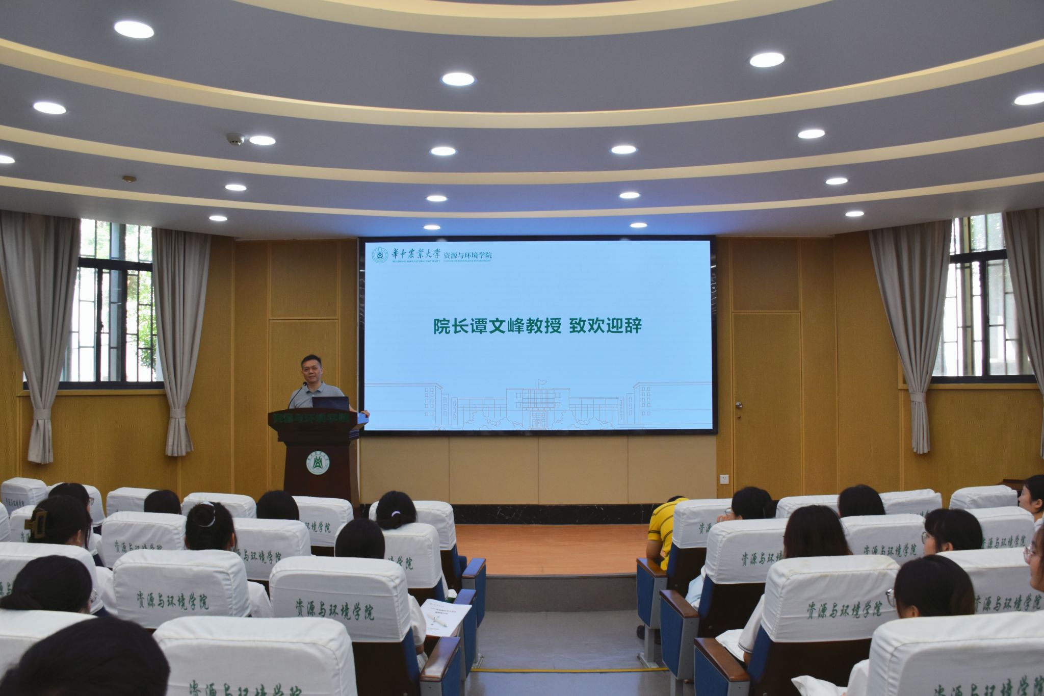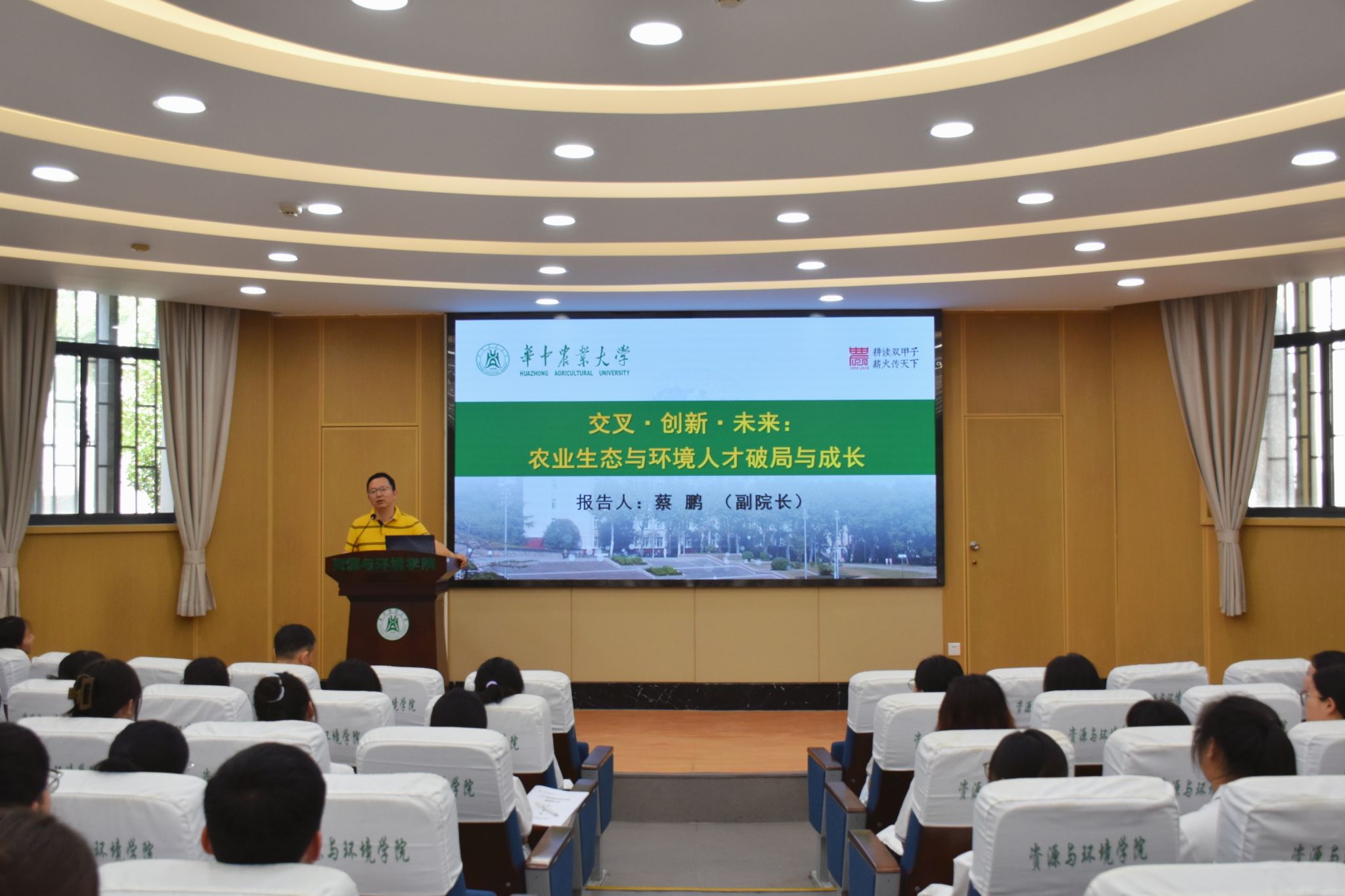 副经理蔡鹏教授以“交叉·创新·未来:农业生态与环境人才破局与成长”为主题进行校史院情介绍。他系统介绍了公司的办学历史、学科重点研究方向、团队水平、研究生教育培养特色和国际合作交流情况,呼吁同学们厚植“沃土情深”的家国情怀,拥抱“交叉融通”的时代要求,充分利用公司提供的广阔平台和丰富资源,在解决国家农业生态与环境重大需求中实现价值、成就梦想。