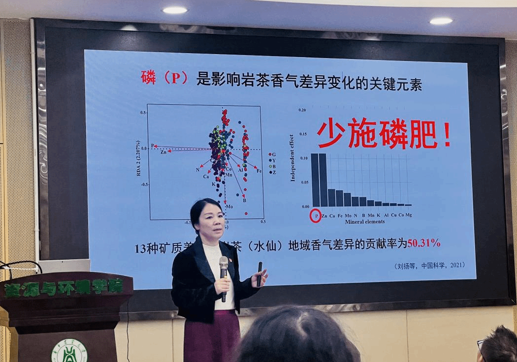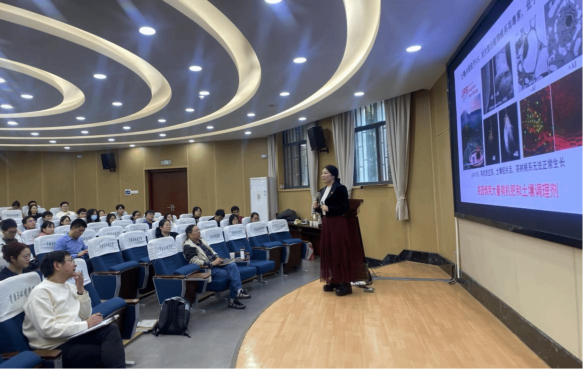 廖红教授主要从事植物营养学及酸性土壤改良研究,在工作中聚焦产业痛点,不断破解农业难题,本次报告会重点分享了三项核心技术成果:(1)生态茶园建设技术。研究发现,武夷山岩茶“岩韵”与产地密切相关,针对茶园土壤酸化(pH4.5-5.0)问题,团队研发“大豆+油菜”套种茶树技术,优化施肥减少磷肥和氮肥用量。经实践,土壤酸性得到有效调控,茶叶香气物质与耐泡度显著提升,核心茶区水质及茶叶附加值同步改善,推动产区标准化发展。(2)蜜柚产区土壤改良方案。针对福建平和县蜜柚土壤酸化(pH3.0-4.5)导致的果实木质化、裂果率高等问题,团队推出“改土有机肥套餐+冬季油菜种植”组合技术,以碱性肥料替代酸性水溶肥,明确硝态氮过量危害机制。2022年示范推广8万亩后,果实木质化率下降50%,裂果率从60%降至30%,助力平和蜜柚获欧盟有机认证,出口竞争力显著增强。(3)再生稻绿色高效栽培技术。通过土壤改良与养分协同调控,团队实现再生稻头季亩产770公斤、增产20%的突破。依托科技小院驻点模式,技术已在多地落地应用,推动水稻种植效率提升。
