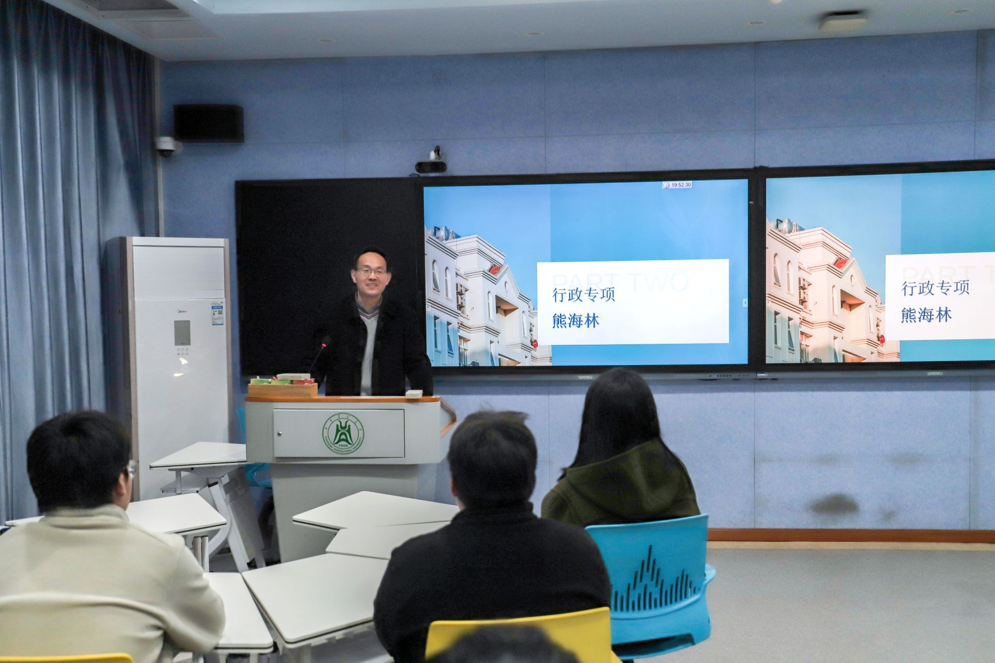 熊海林围绕职业规划方向与同学们展开交流。他指出大三学年是大学阶段的关键抉择期与能力黄金蓄积期,同学们要对自身未来形成清晰认知与科学规划,要有学习的思维转换和实践能力历练。他特别欣赏大家有志于在行政管理、公共服务领域等发展。熊海林鼓励同学们要积极参加员工工作,锻炼组织协调、人际沟通、应急处突等综合能力,并结合学习发展提出:要勇于在公共场合自信表达、大方展示,增加魄力与胆识;要踊跃参与各类创新创业活动,锤炼创新思维与能力,激发创新活力;要学会有效沟通,善于请教与交流。